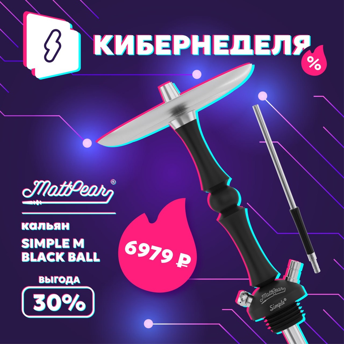 КИБЕРНЕДЕЛЯ: супервыгодное предложение на легендарный кальян MattPear Simple M Black Ball