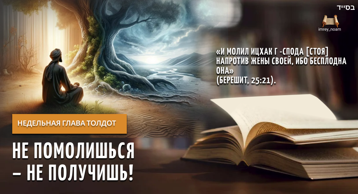 «И молил Ицхак Г -спода [стоя] напротив жены своей, ибо бесплодна она» (Берешит, 25:21). Сказано в трактате Йевамот (64а): «Почему наши праотцы были бесплодны? Потому что Всевышний жаждет молитвы праведников». Наши праотцы страстно желали иметь потомство, которому смогли бы передать свои знания о Создателе мира и о том, как служить Ему и выполнять Его волю. Жизнь для них была невыносима без этого. Сказала Рахель Яакову: «Дай мне сыновей, а если нет, – я подобна мертвой» (Берешит, 30:1). Испытывая на протяжении многих лет страдания из-за того, что не имеют потомство, праотцы обращались к Творцу с молитвами, в которых умоляли дать им детей. Рамхаль в книге «Дерех Ашем» объясняет назначение молитвы: чтобы творения, понимая свои потребности, обращались к Творцу с просьбой осуществить их и тем самым приближались к Нему. Еще пишет Рамхаль, что «по мере их обращения к Господу будет мера блага, которого они удостоятся… Если же творения не будут обращаться к Богу совсем, не получат благо (кот
