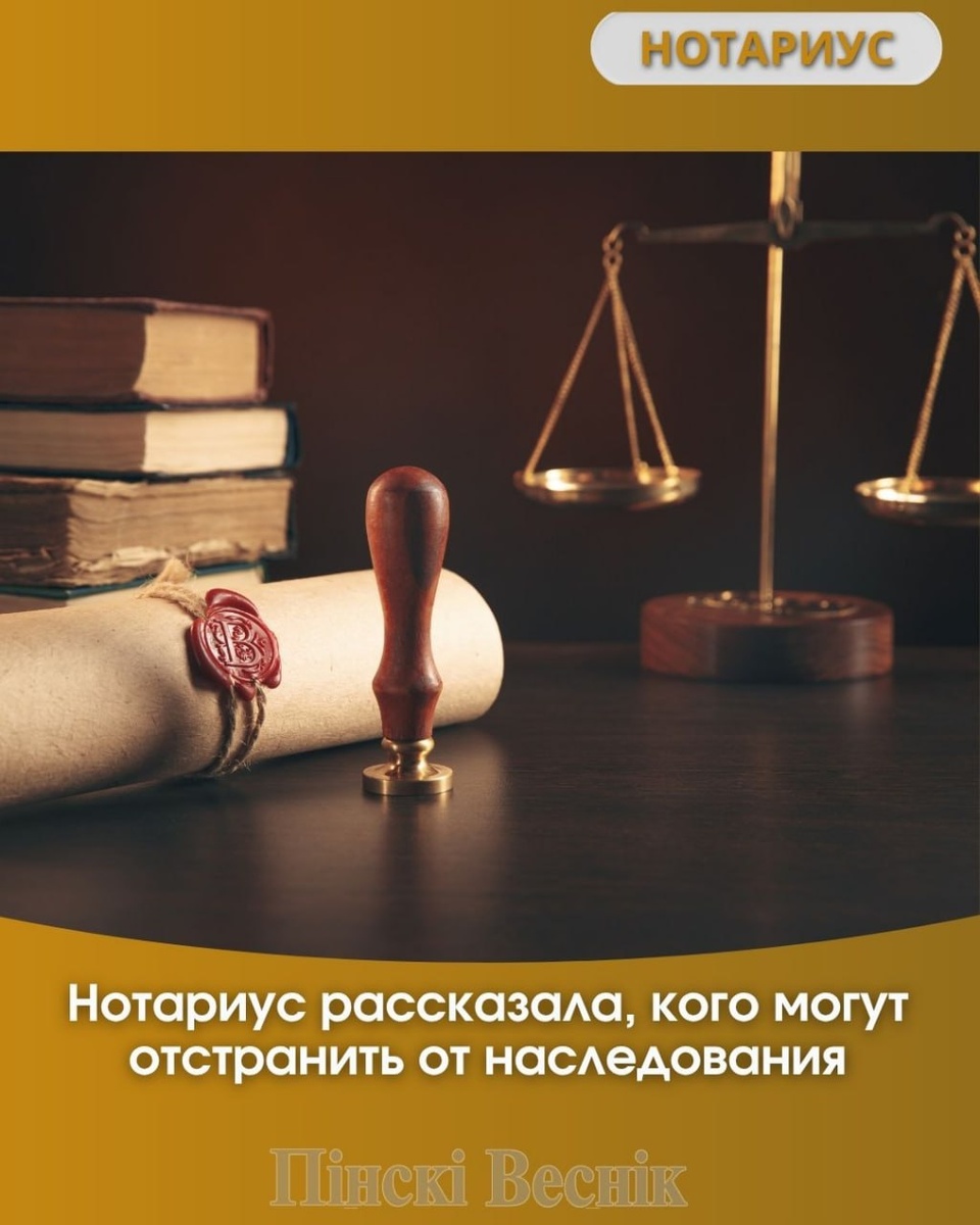 📌Нотариус рассказала, кого могут отстранить от наследования - Недостойные наследники не вправе наследовать имущество, - рассказывает нотариус Брестского нотариального округа Тамара Колесникович. - Отстраняются от наследования как по завещанию, так и по закону лица, которые умышленно лишили жизни наследодателя или совершили покушение на его жизнь. Не может быть отстранен от наследования наследник, если наследодатель, зная о совершенном этим лицом покушении на его жизнь, завещал в его пользу имущество после покушения. 🔄Продолжение на сайте p-v.by 📍📍@Пинский Вестник 📱ЮТУБ 📱САЙТ 📱ИНСТ 📱ВК 📱ОК 📱ФЕ 📱TikTok 📱Прислать новость
