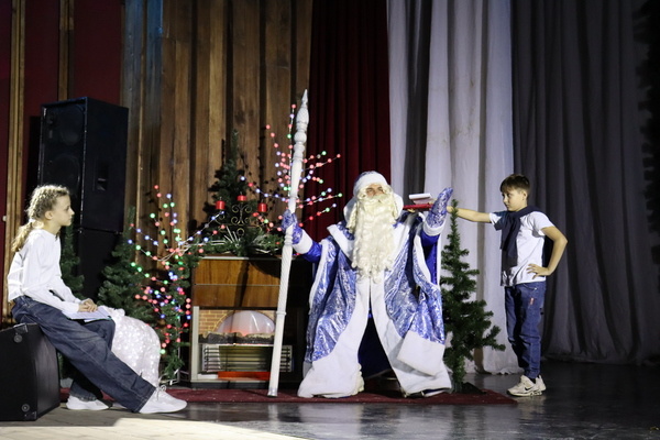 Ведущие мероприятия – ученики школы № 7 Алиса Скоферцаева и Никита Помазков — предложили зрителям дружно позвать именинника. Зал мгновенно откликнулся: хор детских голосов хором произнесли заветное «Дед Мороз!». И вот он появляется – с пушистой бородой, в богатой шубе. -Мне сказали, меня здесь ждут, значит, будем веселиться тут! – с улыбкой приветствует гостей волшебник. Главным сюрпризом стали яркие выступления лучших творческих коллективов города. Юные артисты подготовили для именинника особенную программу — песни и танцы, от которых даже у зимнего волшебника загораются глаза. Роль Деда Мороза уже девятый год подряд исполняет шахтинский певец и звукорежиссёр Дмитрий Белоусов. По его словам, каждый такой праздник — это возможность самому окунуться в детство и подарить зрителям частичку новогоднего чуда. Мероприятие стало настоящим подарком не только для именинника, но и для всех присутствующих: дети смогли увидеть любимого героя не в роли дарителя подарков, а как участника весёлого пр