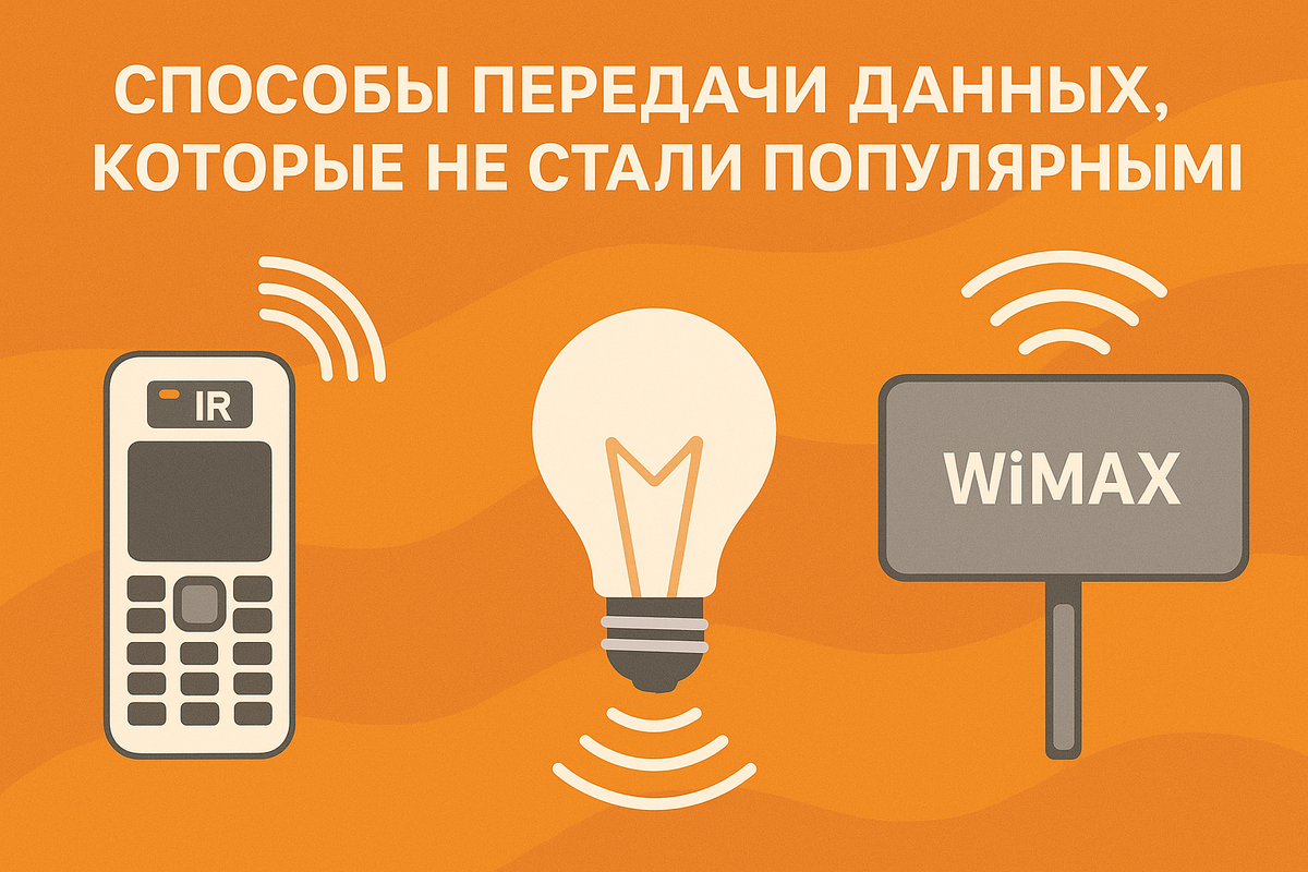 Технологический мир полон попыток “изобрести будущее”, которые так и не стали частью нашей жизни. Некоторые идеи были гениальны, но появились слишком рано. Другие — слишком сложными, дорогими или бессмысленными. Разбираем самые интересные способы передачи данных, которые не взлетели, хотя могли изменить современную связь. Помнишь старые телефоны, которые нужно было стыковать линзами друг к другу? Это и был инфракрасный порт. 📌 Bluetooth и Wi-Fi уничтожили IrDA без шансов. Идея фантастическая: лампочка в комнате передаёт интернет с помощью мерцания светодиодов. Скорость — теоретически до 10 Гбит/с. В музеях, медучреждениях, лабораториях — там, где нельзя использовать радиоэфир. Но массовой технологией Li-Fi так и не стал. Передавать интернет по проводам 220 В казалось идеально: “У тебя уже есть розетка — подключай модем и пользуйся”. Внутридомовые адаптеры (Powerline) — да, популярны. Но полноправный доступ в интернет через электросеть — провал. В начале 2000-х WiMAX считался будущим м