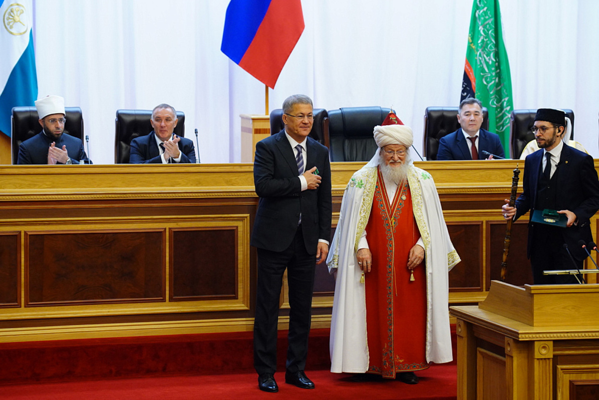 В столице Башкирии проходит конференция, приуроченная к 45-летию избрания Верховного муфтия Талгата Таджуддина на пост председателя Центрального духовного управления мусульман России. Мероприятие объединило представителей власти, религиозных деятелей и ученых из более чем 30 регионов России и зарубежных стран. Глава Башкортостана Радий Хабиров, выступая на конференции, подчеркнул исключительную роль Талгата Таджуддина в укреплении межрелигиозного согласия и патриотическом воспитании. – Особая роль принадлежит личности, ставшей символом мудрости, стойкости и беззаветного служения – уважаемому Верховному муфтию, шейх-уль-исламу Талгату-хазрату Таджуддину. Сложно переоценить вклад, который он внес в консолидацию уммы, патриотическое воспитание, укрепление российской государственности и общественного согласия в стране. Радий Хабиров отметил духовную поддержку, которую Верховный муфтий оказывает военнослужащим в зоне СВО. В знак признания заслуг Талгат Таджуддин был награжден почетной грамо