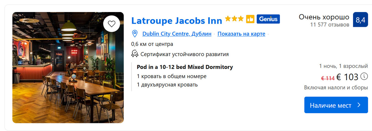 Ирландия - страна совершенно безумных цен на проживание. Так, некоторое количество дней по приезде в Дублине я провел в 4-комнатной квартире (гостиная и 3 спальни), где аренда каждой спальной комнаты стоила 1500 евро в месяц (я такие деньги не платил, конечно), а цена за квартиру целиком с коммуналкой - 5000 евро в месяц. И это не какое-то элитное жилье, обычная квартира в многоэтажном доме, в котором живут в основном даже не ирландцы, а приезжие гастарбайтеры из стран Азии и Африки. Дублин - это город, где койка в хостеле, в котором 10-20-30 человек ночует в одной комнате, может стоить сотню евро за ночь (сделал пару скринов с букинга в подтверждение). При этом за такие деньги вам даже полотенца не дадут - его нужно брать на ресепции за отдельные деньги. Могут отказать даже в хранении багажа после отъезда - сдавай его в специальную платную камеру хранения при хостеле. Из-за таких цен некоторые "не вписавшиеся в рынок" люди ночуют попросту на улице - ставят палатки или лежат даже без