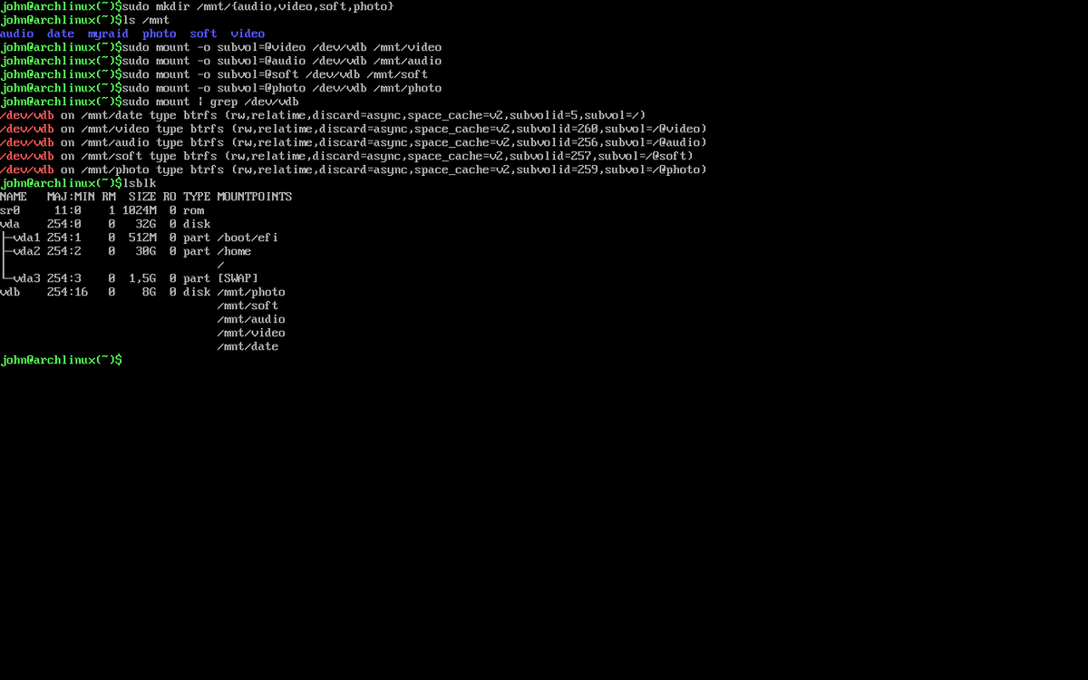 sudo mount -o subvol=@photo /dev/vdb /mnt/photo