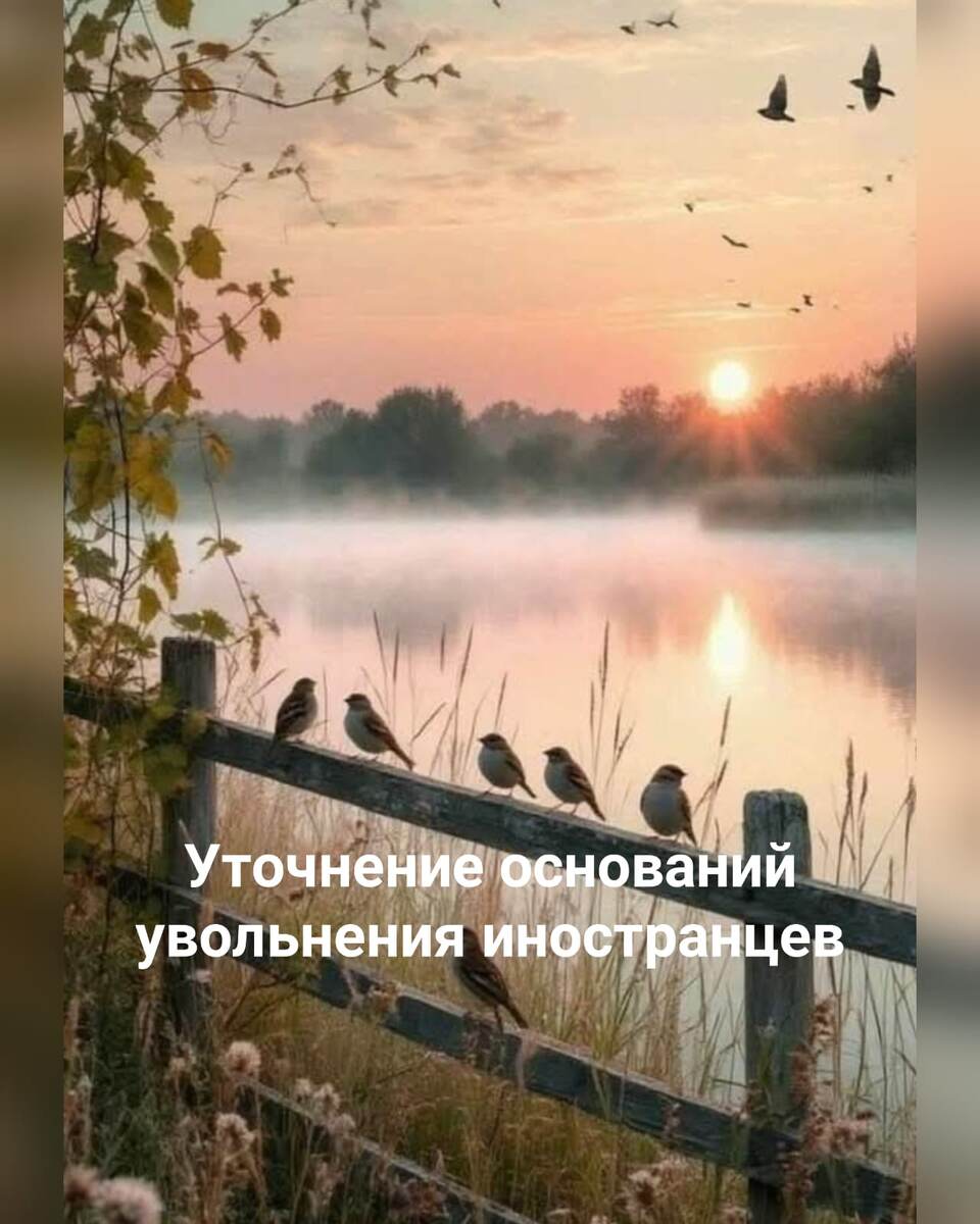 Трудовым кодексом (ТК РФ), помимо общих оснований для прекращения трудового договора, предусмотрены основания для увольнения иностранного гражданина или лица без гражданства: ✳️ приостановление, окончание срока действия или аннулирование разрешения на привлечение и использование иностранцев; ✳️ окончание срока действия или аннулирование разрешения на работу или патента; ✳️ аннулирование или окончание срока действия разрешения на временное проживание; ✳️ аннулирование или окончание срока действия вида на жительство; ✳️ окончание срока действия полиса ДМС либо прекращение заключенного работодателем договора о предоставлении платных медицинских услуг работнику - в отношении высококвалифицированного специалиста; ✳️ приведение численности иностранных работников в соответствие с установленными федеральными законами, указами президента и постановлениями правительства ограничениями. 📜Федеральный закон от 17.11.2025 N 419-ФЗ «О внесении изменений в статью 327.6 Трудового кодекса Российской Фед