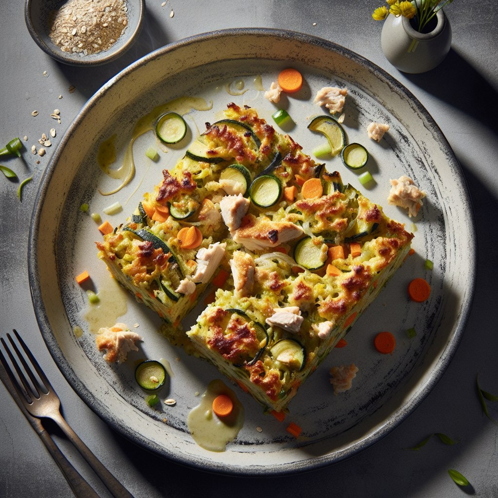 Овощной кугель с курицей Рецепт: Кабачок (250 г) натереть на крупной терке, слегка отжать. Морковь (100 г) и лук (60 г) мелко нарезать, слегка припустить на сухой сковороде. Филе куриное без кожи (200 г) измельчить, смешать с овощами. Добавить 2 яйца, 30 г овсяных хлопьев, специи, соль. Тщательно перемешать, выложить в форму для запекания, смазанную каплей оливкового масла. Запекать при 190°C 35–40 мин до золотистой корочки. Немного остудить, нарезать порциями. Пищевая ценность: 85 ккал/100 г; вес блюда — 640 г. Ешь с пользой! Держи курс на результат: твое здоровье – твой главный приоритет💪 @ppmenuday