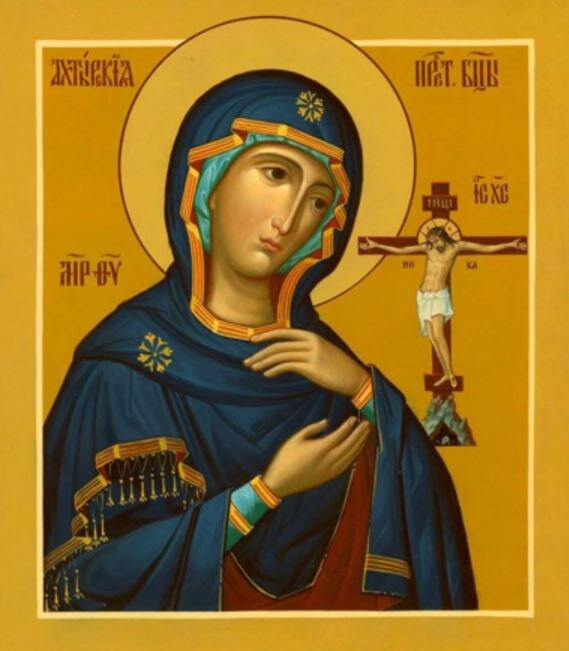 Все нужные ссылки в конце статьи🤲 название АКАФИСТА ПОСЛЕ # 👇 Что вы представляете, когда слышите об иконах Богородицы? Чаще всего — нежность, свет, Младенца Христа на руках. Но есть образ, который разбивает эту парадигму. Это Ахтырская икона — одна из самых пронзительных икон в мире, где Богородица изображена без Младенца. Ее история началась с чуда в густой траве и продолжается исцелениями вот уже почти 300 лет. 🌿 Лето 1739 года. Малороссийский городок Ахтырка (ныне Сумская область). Священник Даниил Васильев, человек глубокой веры, косил траву на своем огороде и вдруг увидел в лужах необыкновенный свет. Подойдя ближе, он обнаружил в траве икону Божией Матери, сиявшую как солнце. Это был не просто забытый образ. Икона была написана на холсте, наклеенном на доску, и выглядела так, будто ее только что написали. Но главной особенностью был сюжет: Богородица стояла у подножия Креста, на котором был распят Христос. Ее руки были скрещены на груди, а лицо выражало безмерную скорбь и смир