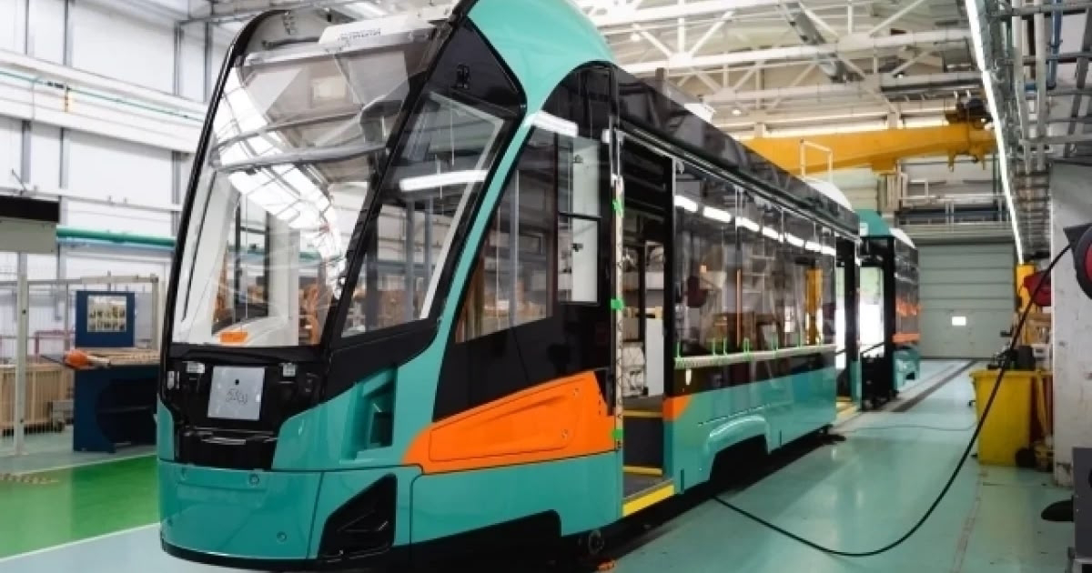 Новый трамвай «Невский» для линии «Славянка» протестировали на испытательной линии «Невского завода электрического транспорта»
