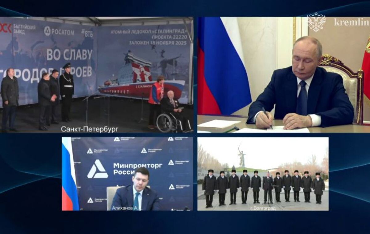 На Балтийском заводе в Санкт-Петербурге состоялась торжественная церемония закладки универсального атомного ледокола «Сталинград». Президент России Владимир Путин назвал это событие знаковым не только для судостроения, но и как дань памяти подвигу защитников города-героя. В мероприятии в режиме видеосвязи приняли участие глава «Росатома» Алексей Лихачёв, руководитель Объединённой судостроительной корпорации Андрей Пучков, министр промышленности Антон Алиханов и губернатор Волгоградской области Андрей Бочаров. Центральным символическим событием стала передача капсулы с землёй с Мамаева кургана, которую ветеран Великой Отечественной войны Павел Винокуров вручил главе «Росатома». Она будет храниться на борту ледокола, связывая его имя с памятью о великом сражении. «Сталинград» станет шестым серийным ледоколом в проекте 22220 - флагманской серии российского атомного флота. Атомоход длиной 173,3 м имеет мощность в 60 МВт. Ледокол способен проходить льды толщиной до 3 метров. На «Сталинграде