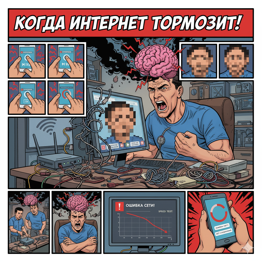 😤 НЕ ВЫНОСИТЕ МНЕ МОЗГ: Когда интернет "немного" тормозит Когда вам нужно срочно отправить отчет, посмотреть фильм или просто посидеть в соцсетях, а ваш интернет-провайдер решил, что сегодня день пикселей и бесконечной загрузки. 😵💫 Представьте себе. Вы удобно устроились, чтобы наконец-то заняться важной работой, расслабиться после долгого дня или просто пообщаться с друзьями. Но как только вы нажимаете кнопку "Play" или "Отправить", начинается ад: * Вечная загрузка: Знаменитый "спиннер" или "буферизация" появляется на экране и крутится, крутится... До бесконечности. Кажется, что даже время замедляется. * "Интернет есть, но его нет": Wi-Fi показывает полное количество палок, роутер мигает всеми огнями, но ни одна страница не открывается. Вы пытаетесь проверить скорость, но тест скорости сам не загружается. * Пиксельный апокалипсис: Вы пытаетесь посмотреть видео, но оно превращается в слайд-шоу из размытых, квадратных пикселей. Кажется, что вы вернулись в 90-е, когда интернет бы