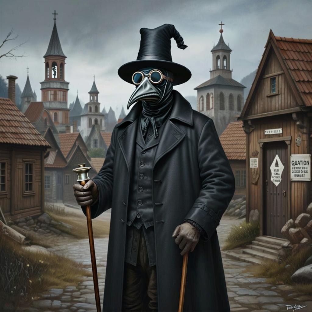 - Идея защиты: в эпоху теории миазмов считалось, что болезни распространяются «зловониями». Маска должна была фильтровать «плохой воздух». Трость помогала осматривать больных без прямого контакта, указывать, поддерживать дистанцию. Практический эффект против блох и капельной инфекции был ограниченным, но плотная одежда частично защищала от укусов.