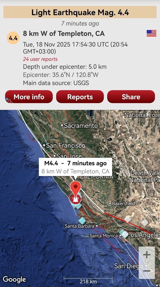 Доброго утра всем подписчикам из Калифорнии! Сан-Андреас - дело такое, сейсмическое