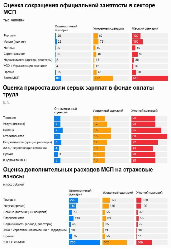 Власти России планируют отменить льготный тариф по страховым взносам для малого и среднего бизнеса (МСП) с 2026 года, пишет Forbes. Льготы ввели ещё в 2020 году, чтобы снизить нагрузку на малый бизнес: компаниям разрешали платить 15% вместо стандартных 30% страховых на зарплаты, превышающие МРОТ. Это должно было стимулировать предприятия повышать зарплаты и уходить от «серых» схем, когда часть выплачивалась в конвертах. Если новый законопроект примут, ставка для большинства компаний снова вырастет с 15% до 30% от фонда оплаты труда, а власти планируют получить дополнительно 735 млрд рублей. Однако аналитики считают, что многие уйдут в тень и бюджет получит дополнительно лишь около 366 млрд рублей. Общепит при этом переложит расходы на покупателей, а компании, где зарплаты занимают около 80% расходов, могут оказаться на грани банкротства.