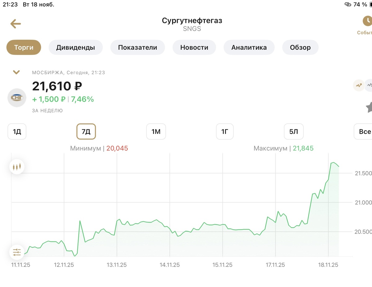 На прошлой неделе я писал о том, что акции Сургутфтегаза обыкновенные прошли свое дно после более, чем годового падения: И вот динамика роста показывает, что это на самом деле так, даже не дожидаясь экспирации декабрьского фьючерса: Замечу, что никто из избушек не говорил о покупке данных акций, ни когда они были на дне, ни когда стали выходить из него. Они видимо начнут писать свои рекомендации о покупке, когда акции сделают вверх еще 10-20%. Удачи и трезвого анализа в ваших инвестициях!!! P.S. Подписывайтесь на мой телеграмм-канал: https://t.me/Cervonets