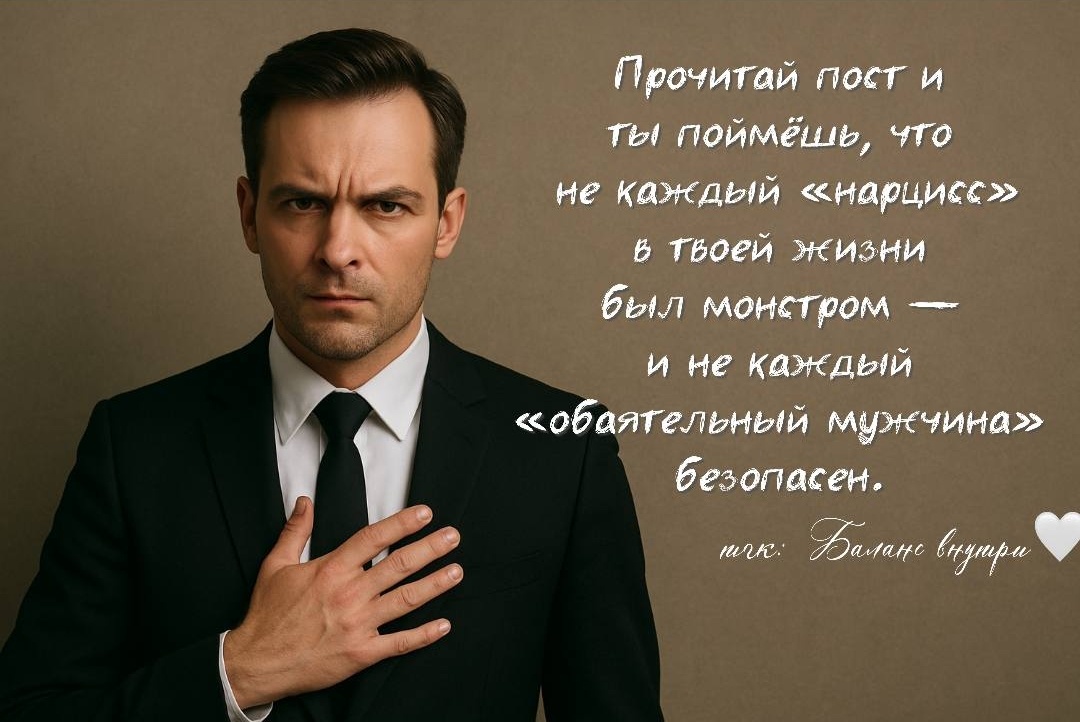 И разница между ними — огромная. Но её почти никто не видит. Сегодня разберёмся простым человеческим языком. И, возможно, ты поймёшь, что не каждый «нарцисс» в твоей жизни был монстром — и не каждый «обаятельный мужчина» безопасен. ✨ Что такое нарциссический темперамент? Это черта личности, а не диагноз. Такой человек может быть: — уверенным, — ориентированным на успех, — харизматичным, — любящим внимание, — чувствительным к критике. НО: он способен к эмпатии, умеет извиняться, может признавать ошибки и не разрушает партнёра. Такие мужчины: ✔️ могут быть стабильными в отношениях ✔️ умеют слышать, если им сказать прямым текстом ✔️ любят восхищение, но не требуют поклонения ✔️ не мстят за границы Это «здоровый нарциссизм», который есть почти у всех уверенных людей. 🔥 А что такое нарциссическое расстройство личности (НРЛ)? Это уже клиническая история. Это неспособность любить, неспособность к эмпатии, глубокая внутренняя пустота и потребность постоянно подпитываться чужими эмоциям