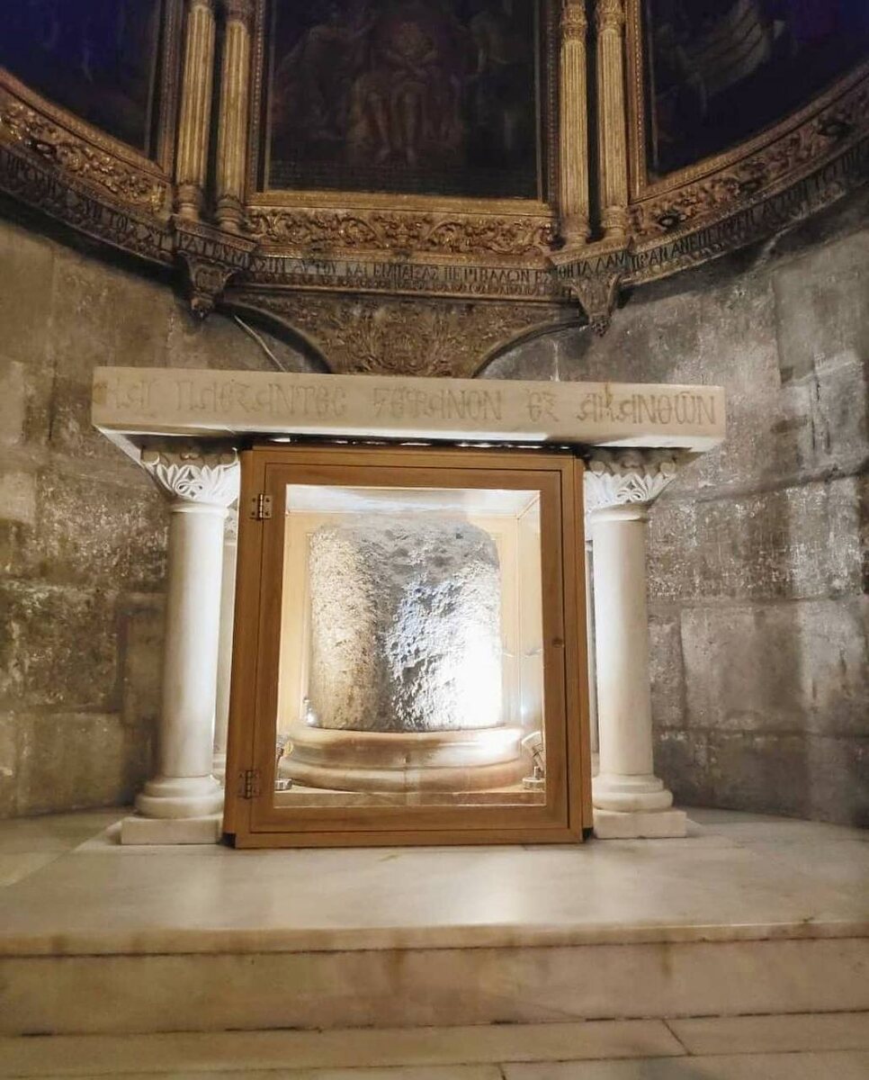 Придел Возложения Тернового Венца и Бичевания, Храм Гроба Господня ☦️ Около лестницы, уходящей вниз к церкви святой Елены, расположен Придел Тернового Венца. В центре придела, под престолом, под стеклом помещен фрагмент толстой, круглой колонны серого мрамора. По преданию, на этой колонне, высотой не более 30 см, сидел Спаситель в момент увенчания Его терновым венцом.⠀ ⠀ ☦️ За престолом установлены три иконы: взятие Иисуса под стражу в Гефсиманском саду, суд у Понтия Пилата и центральная икона с отражением главного события этой часовни - бичевания Иисуса Христа.⠀ ⠀ «И, раздев Его, надели на Него багряницу; и, сплетши венец из терна, возложили Ему на голову и дали Ему в правую руку трость; и, становясь пред Ним на колени, насмехались над Ним, говоря: радуйся, Царь Иудейский! и плевали на Него и, взяв трость, били Его по голове»⠀ ✍️ 🌿🌿🌿 🤩МИР ПРАВОСЛАВИЯ