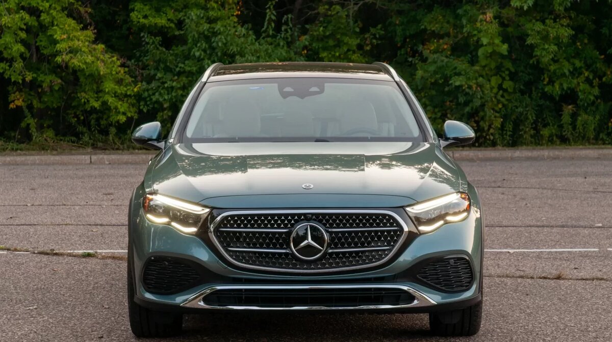Наверное, невозможно найти водителя, которому бы нравился универсал на пневмоподвеске, с внедорожным режимом, стандартным полным приводом и кожаной обивкой. Mercedes-Benz E450 All-Terrain 2025 года обладает всем этим и даже больше. Это также самый дешевый способ приобрести универсал E-класса и, безусловно, самая практичная модель в линейке. E-Class All-Terrain был возрождён в новом поколении E-Class 2024 модельного года. Дизайн и технологии были обновлены, но основная формула осталась прежней: пневмоподвеска, увеличенный дорожный просвет и определённые внедорожные возможности. Это не гусеничный вездеход Rubicon, это автомобиль для лыжных приключений на выходные. All-Terrain перенял дизайн нового E-Class, что превращает его в красивый универсал. Горизонтальные фары сочетаются с чёрной решёткой радиатора, создавая образ, напоминающий енота. Остальная часть кузова, в лучшем случае, эволюционировала, а задняя дверь получила забавные светодиодные фонари, усеянные звёздами. Он красивый, сде