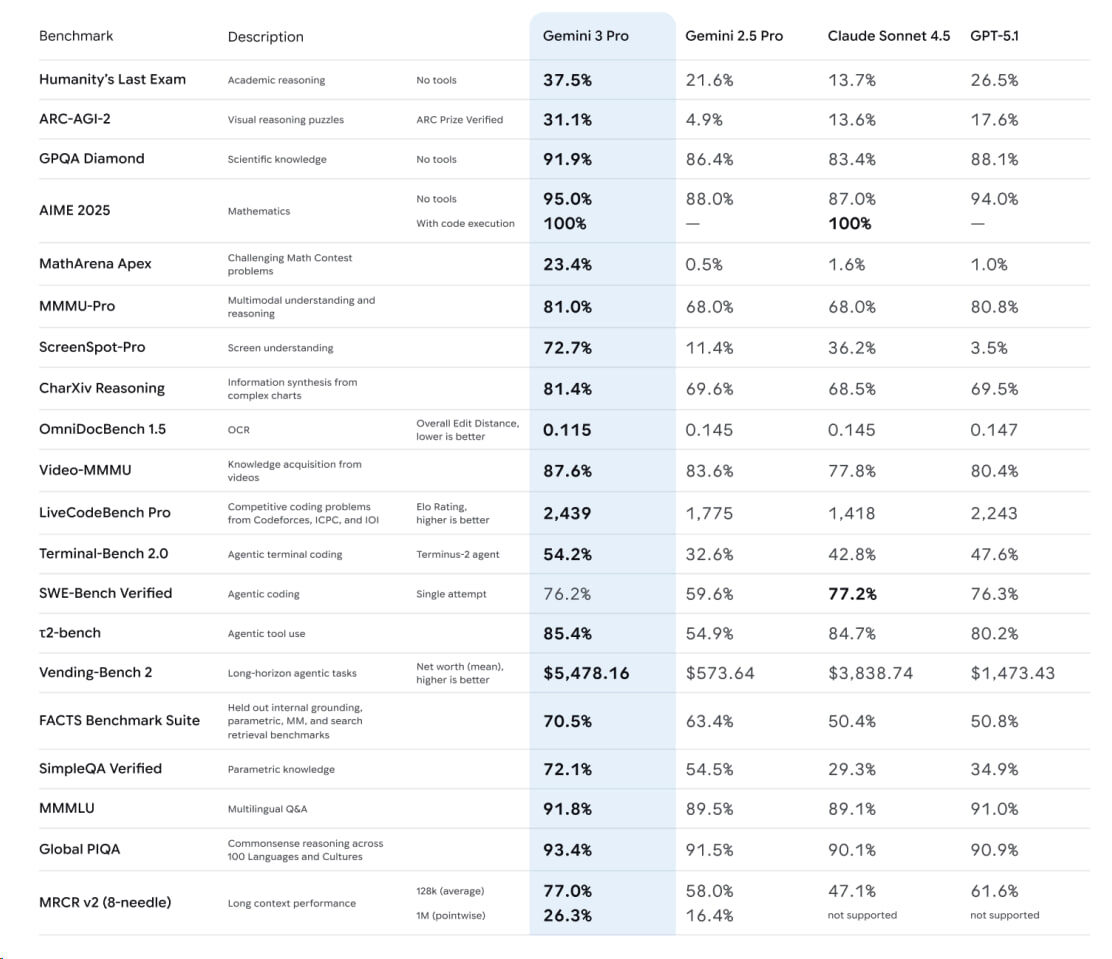 Gemini 3 Pro пока не вышла, но результаты бенчмарков уже есть. Карточка модели тоже утекла: https://web.archive.org/web/20251118111103if_/https://storage.googleapis.com/deepmind-media/Model-Cards/Gemini-3-Pro-Model-Card.pdf Релиз, возможно, уже сегодня.