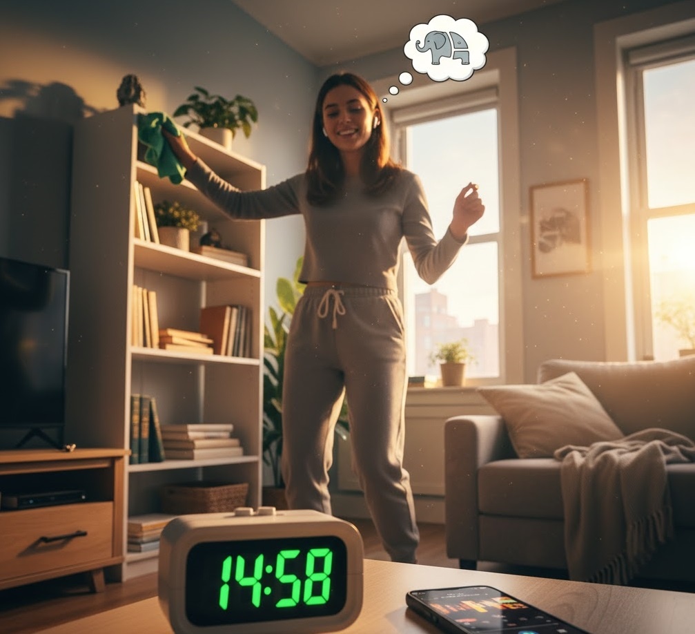 Почему это работает: Наш мозг боится больших задач («Убрать всю квартиру»), но легко соглашается на маленькие («Повозиться 15 минут»). За неделю вы наберете почти 2 часа чистого времени уборки, не заметив этого.