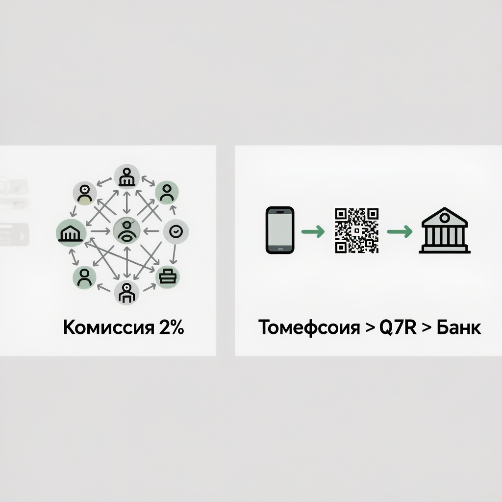 Здравствуйте, друзья! Каждый раз, когда клиент оплачивает покупку картой, вы слышите приятный писк терминала. Но за этим писком скрывается тихий «чавк» — это банк-эквайер откусывает свой кусок от вашей выручки. Обычно это 1.5%, 2%, а иногда и все 2.5%. Казалось бы, мелочь. Но посчитайте: при обороте в 1 миллион рублей в месяц 2% — это 20 000 рублей, которые вы просто отдаете банку. За год набегает 240 000 рублей — цена хорошего отпуска или нового оборудования. Вы отдаете их просто за то, что банк проводит платеж. Но уже несколько лет существует технология, которая позволяет сократить эту комиссию в 3-5 раз. Она называется СБП — Система быстрых платежей, и платежи через нее проходят по QR-коду. И банки ее, мягко говоря, недолюбливают. Давайте разберемся, как это работает и где подвох. Чтобы понять разницу, нужно знать, как устроен обычный платеж картой: Платеж через СБП по QR-коду устроен проще: В этой схеме нет дорогих посредников в виде международных платежных систем и сложного взаим