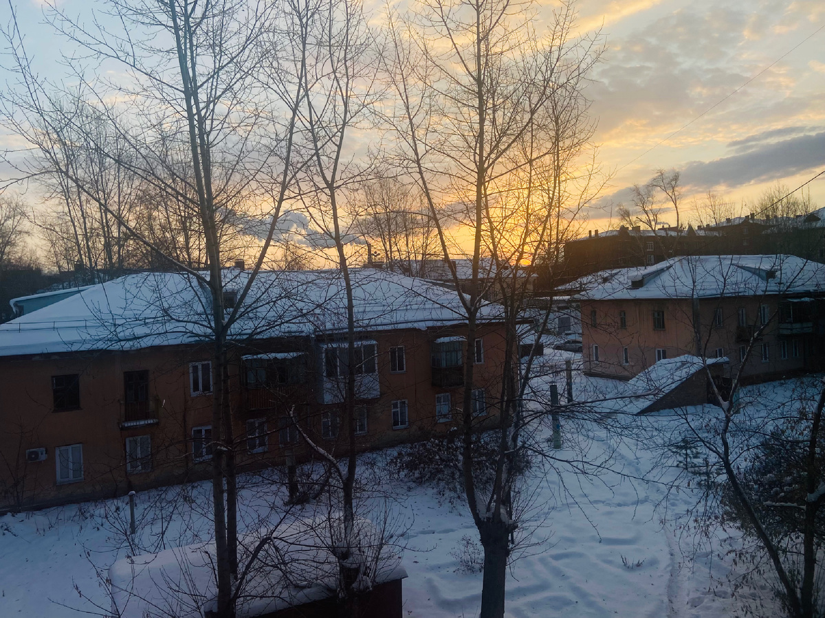 -7 температура воздуха за окном и ярко светит солнце. Свежий морозный воздух бодрит не хуже чашки горячего чая. Теплый пар от которой затянул все окна на балконе.