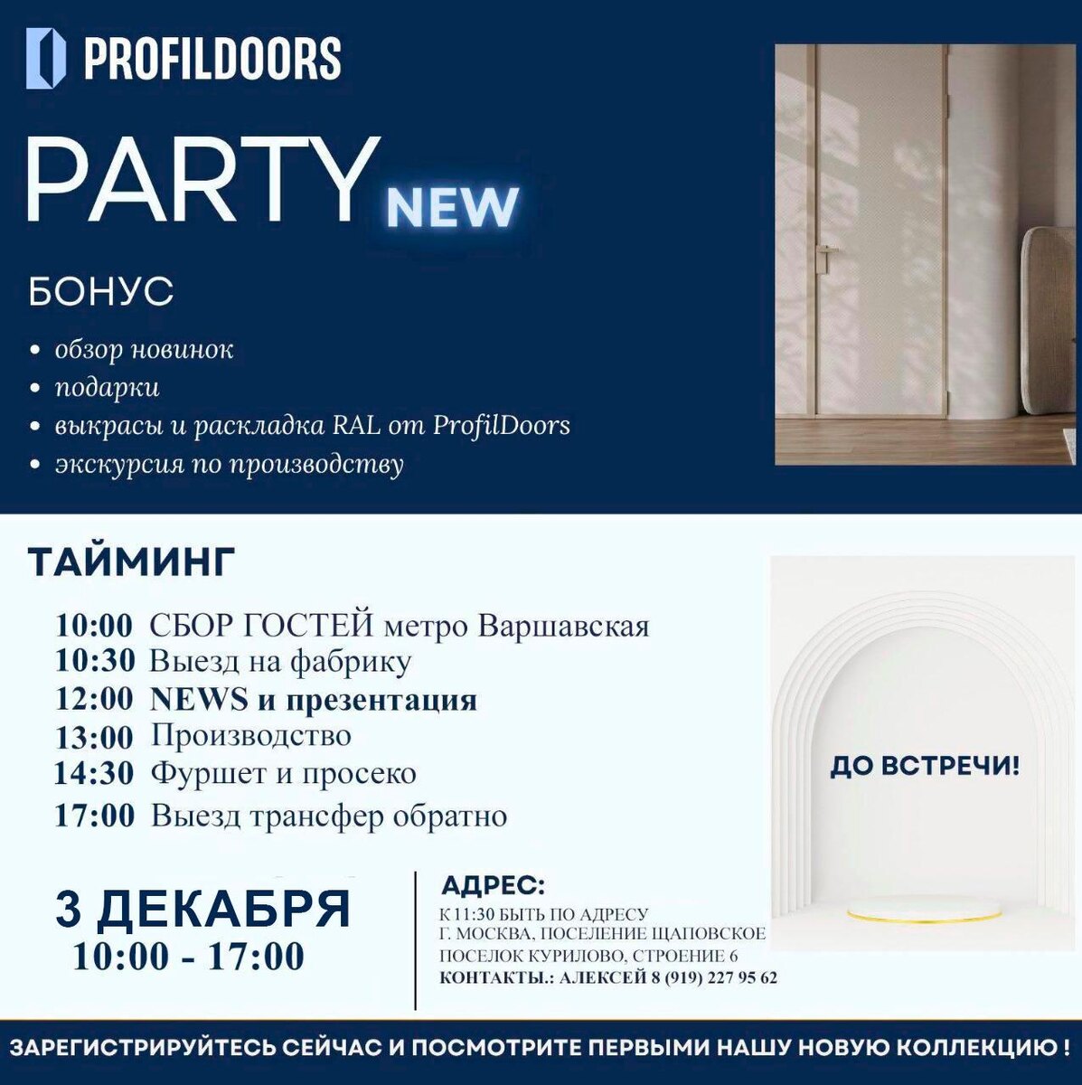 🗓️ 3 декабря В 10:00 PROFILDOORS PARTY Количество мест ограничено — всего 10. •Регистрация https://forms.gle/jWqaSSRYu31sJFDg9 •Регистрация на сайте если нет гугл акаунта https://profildoors.design/dizajneram/ • Трансфер • NEWS и презентация • экскурсия по производству • подарки выкрасы профиля и раскладка RAL • Фуршет и просеко Вас ждёт новая программа, даже если вы уже бывали с нами раньше: ✨ Обновлённый шоурум с последними новинками фабрики. ✨ Два производственных цеха: двери из шпона и двери с эмалью. ✨ Новая линия покраски стекла. В этом посте есть большое видео, которое не загрузилось в Дзен. Откройте оригинал поста в телеграме, чтобы его посмотреть