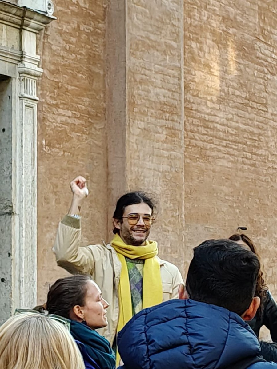 Илья Владимирович рассказывает туристам, почему мы пришли в аббатство и отвечает на вопросы группы