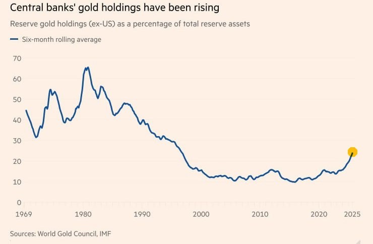 🌕 Мировые ЦБ продолжают активно покупать золото, но до уровня объема покупок 1980-х годов еще далеко — данные WGC — 🌕 Рэй Далио считает, что сегодня ситуация в золоте похожа на начало 1970-х и, несмотря на уже высокие уровни, цена может вырасти еще намного выше. — 🌕🇮🇳 Индия в октябре увеличила импорт золота втрое - до $14,72 млрд — The Hindu — 🌕 Международные инвесторы активно восстанавливают вложения в золото чистый приток в золотые ETF на прошлой неделе составил $2,9 млрд, что в 8 раз больше, чем неделей ранее тем не менее, этот приток все еще на $2 млрд меньше среднего объема вложений в сентябре—октябре — данные EPFR — 🌕 JPMorgan: к концу 2026г золото может вырасти до $5200–5300, главным драйвером роста цен станут продолжающиеся покупки со стороны ЦБ развивающихся стран #золото #индия #Далио