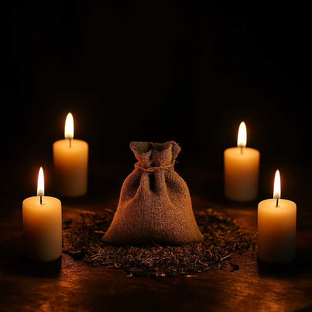 Наполните небольшой мѣшочекъ сухой травой лаванды или розмарина. Напишите на листкѣ бумаги ваше завѣтное желанiе. Сверните эту записку трижды и вложите ее въ мѣшочекъ съ травой. Положите мѣшочекъ въ центръ круглаго стола. Разставьте по четыремъ сторонамъ отъ него четыре свѣчи и зажгите ихъ фитили. Вытяните руки, держите ваши ладони надъ мѣшочкомъ и повторяйте заговоръ: «Да исполнятся мои желанiя, да сбудутся мои мечты». Повторяйте это до тѣхъ поръ, пока полностью не увѣруете, что то, о чѣмъ вы писали на бумагѣ, обязательно произойдетъ. Затѣмъ затушите свѣчи и храните мѣшочекъ въ великой тайнѣ до исполненiя вашей мечты. Когда-же задуманное вами случится, бросьте мѣшочекъ въ печку или въ костеръ.