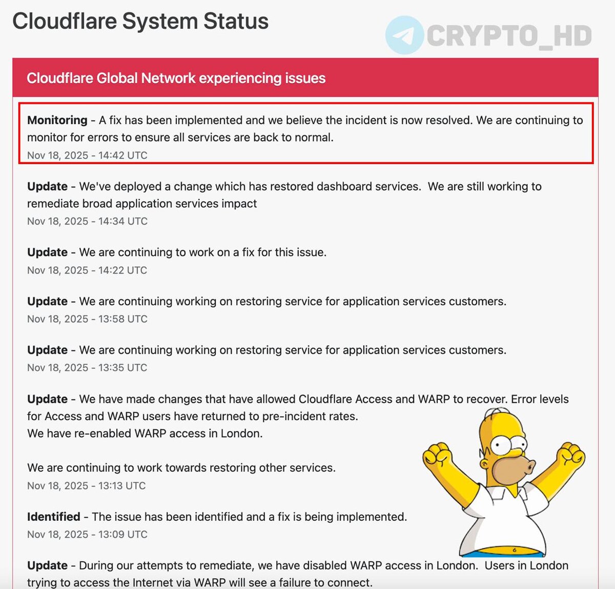 👏 Cloudflare начал работать в штатном режиме. Ранее: сбой Crypto Headlines