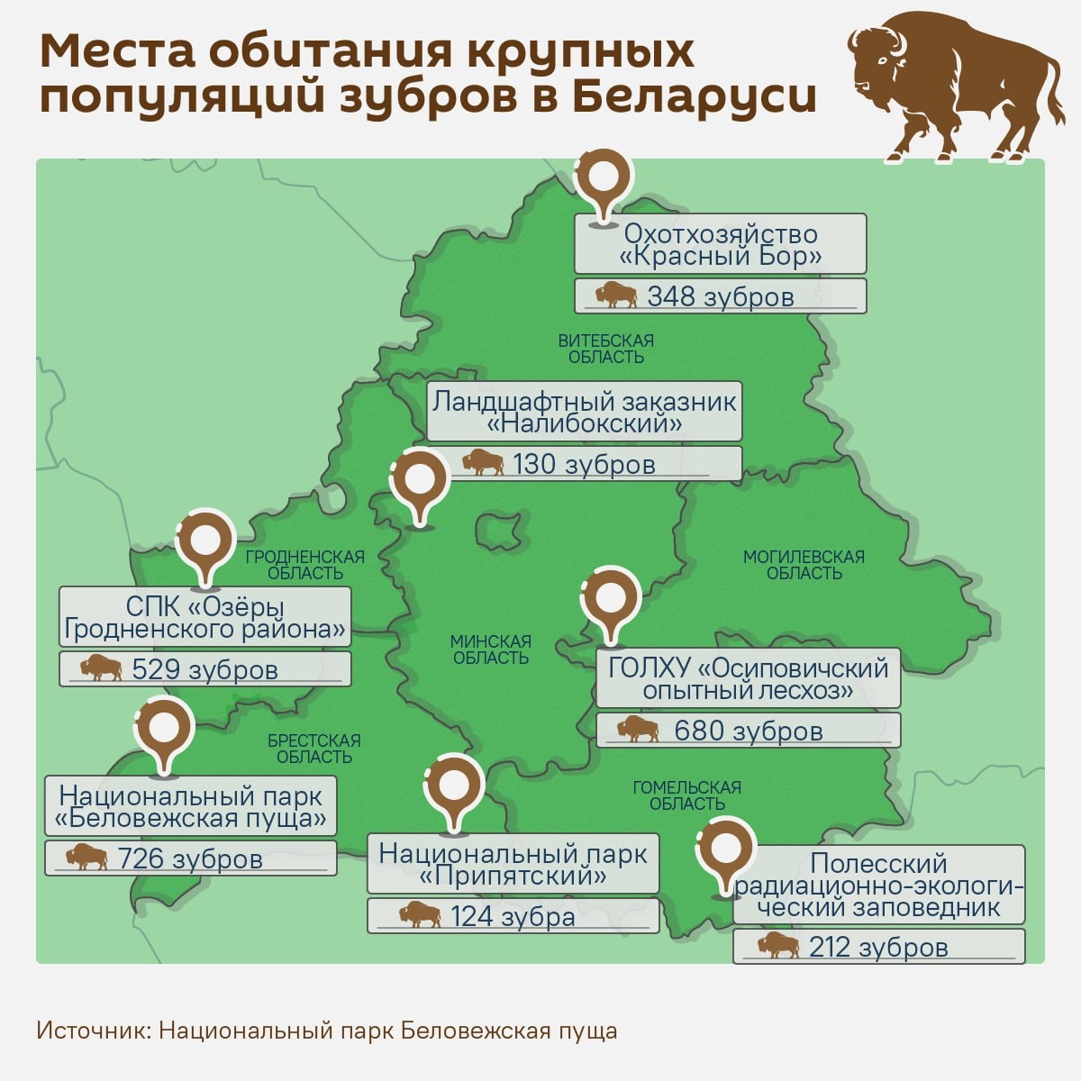 В ответ на пост Где в Беларуси живут зубры и сколько их — инфографика Всего в мире насчитывается 12 209 особей зубров, 2927 из них обитают в Беларуси. В стране зарегистрировано 7 мест, где насчитываются популяции более чем в 100 животных. Крупнейшее из них — это Национальный парк "Беловежская пуща". 🔴 Читайте Sputnik Беларусь в MAX