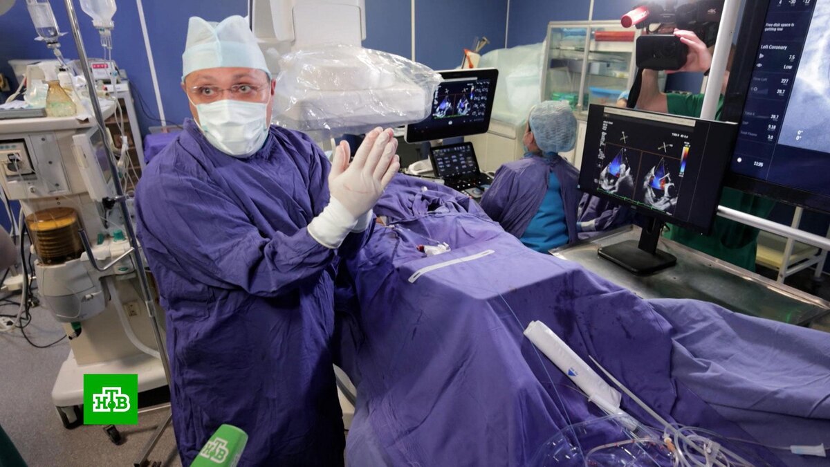 [ Смотреть видео на сайте НТВ ] Новейшие научные разработки в области лечения и диагностики сердечно-сосудистых заболеваний в эти дни обсуждают в Москве. На Всероссийский съезд в Центр имени Бакулева приехали ведущие кардиохирурги страны. Обмен опытом происходит наглядно. Прямо в зал поступает трансляция из операционных, где врачи спасают жизни пациентов. Пока в легендарной Бакулевке своим чередом идет съезд сердечно-сосудистых хирургов, в ее отделениях проводят плановые операции. И они, как это ни удивительно, — часть съезда. Трансляция в зал идет прямо от операционного стола. Павел Кахкцян, заведующий отделение реконструктивной хирургии клапанов сердца и коронарных артерий Институт коронарной и сосудистой хирургии ФГБУ «НМИЦ ССХ им. А. Н. Бакулева» Минздрава России: «Это будет операция как и для пациента, так и для врачей, чтобы увидеть новое, увидеть, как это делать. Это крайне ценно и для молодых специалистов, и для опытных хирургов». Пациенту 64 года. Случай тяжелый, но от того дл