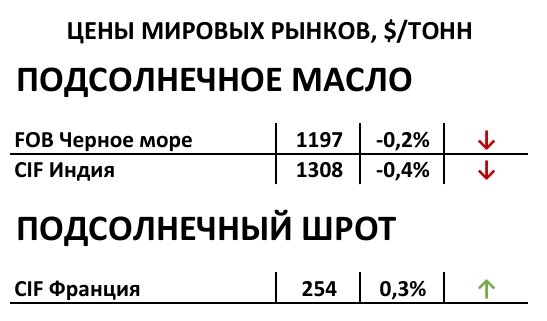 - Подсолнечный шрот - 215,6 $/Т (+1,2 $/Т)