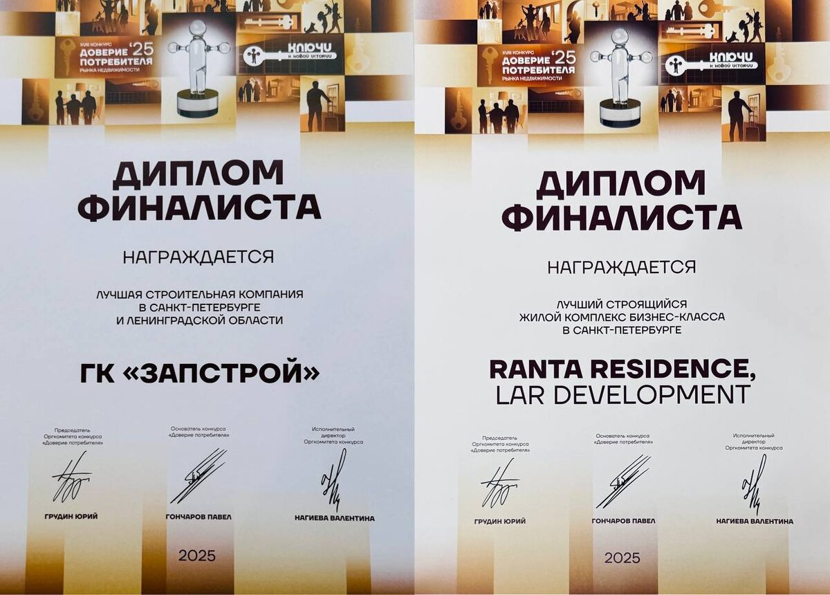 Сегодня состоялась защита компаний и проектов финалистов конкурса «Доверие потребителя 2025» перед экспертным советом. Наша ГК Запстрой вошла в пятерку лучших компаний-застройщиков Санкт-Петербурга и Ленинградской области! И в финале конкурса мы боремся с такими застройщиками как: Setl Group, RBI, КВС и Главстрой за звание лучшей строительной компании. А наш жилой комплекс Ranta Residence уже вошел в четверку лучших строящихся проектов бизнес-класса в Санкт-Петербурге! И в финале конкурса мы боремся с такими проектами как: Bashni Element, Струны, Дом на Курской за звание лучшего строящегося проекта бизнес-класса в Санкт-Петербурге. Уже скоро станут известны победители конкурса, очень ждем и верим в нашу победу🥇 #Довериепотребителя2025 #ГКЗапстрой #LARDevelopment #ЕвгенийБескровный
