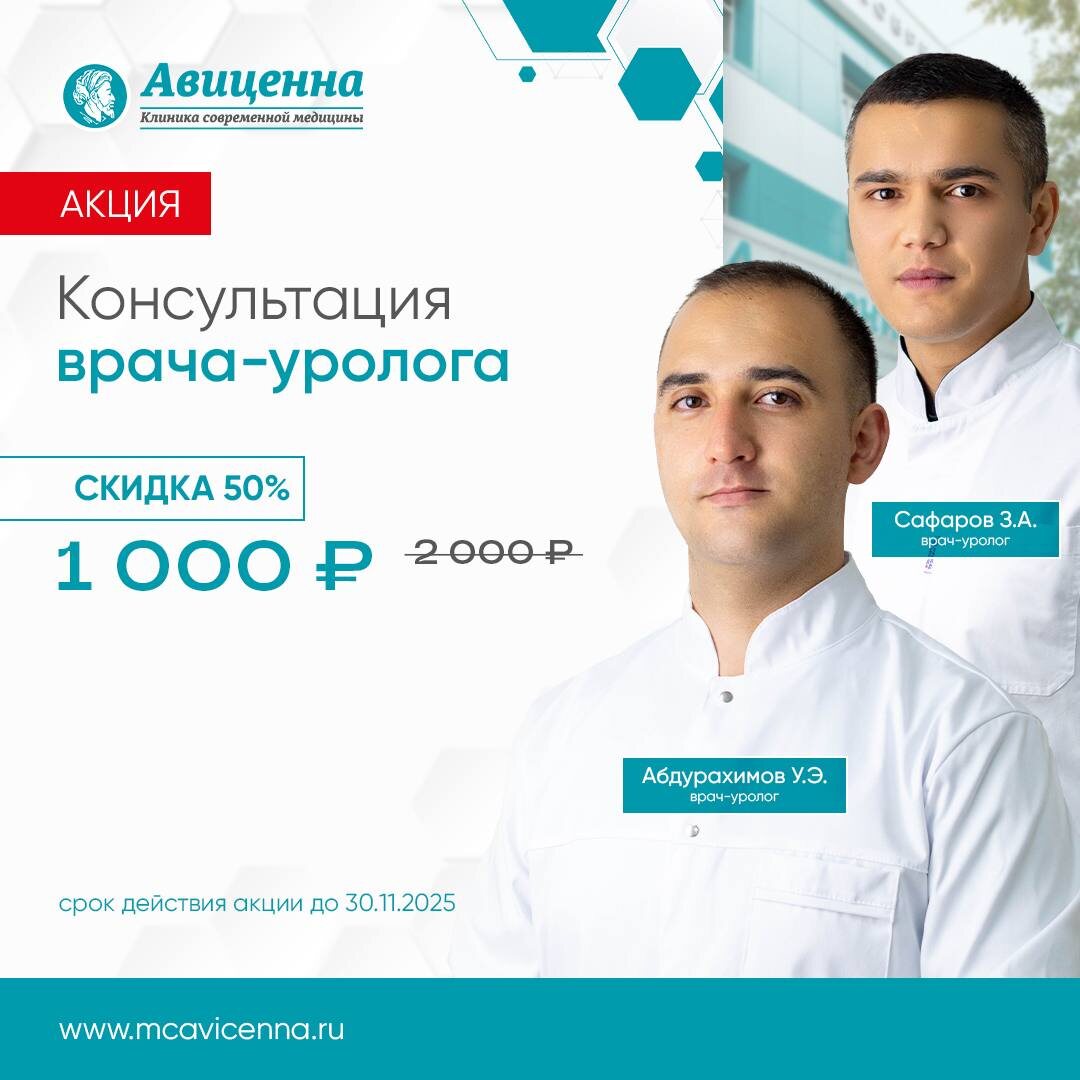 💥 СУПЕР-ЦЕНЫ на ЗДОРОВЬЕ в «Авиценне»! 🔹 КОНСУЛЬТАЦИИ (до 30.11) Всего за 1000 ₽ вместо 2000 ₽🔥 1. Консультация Абдурахимова Усеина Энверовича врача-уролога 2. Консультация Сафарова Зокирджона Абдувохидовича врача-уролога 🔹 ЛАБ. КОМПЛЕКСЫ (до 31.12) 1. Вирусы (ЦМВ, Герпес, Эпштейна–Барр): 1500 ₽ 2. Профилактика (Краснуха, Корь): 1300 ₽ 🔹 ВЫГОДНОЕ УЗИ (Скидка 10% до 15.12) 1. УЗИ после 16:00 (Кишечник, Брюшная полость + Почки). 2. УЗИ ОМТ у врача Лунева Николая Николаевича врача ультразвуковой диагностики со скидкой 10% 🔹 Комплекс анализов "Причины усталости" за 1500 руб.: ОАК + СОЭ, Витамин D, ТТГ, Железо + В ПОДАРОК 🎁 расшифровка анализов. 🔹 Скидка 15% на все анализы по адресу: с. Мирное, ул. Крымской Весны, 1 🔹 Консультация врача-акушера-гинеколога Елезарова А.А. + УЗИ В ПОДАРОК 🎁 всего за 2000 руб. 🔹 Комплекс анализов на проверку организма от паразитов всего за 3 000 руб. 🔹 Консультация детского травматолога-ортопеда за 2 000 руб. + проверка на плоскостопие В