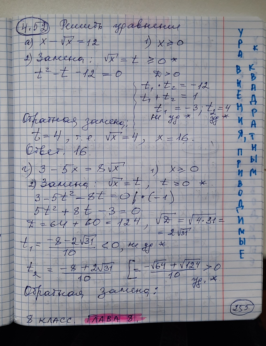 Уравнения, приводимые к квадратным. Системы нелинейных уравнений.