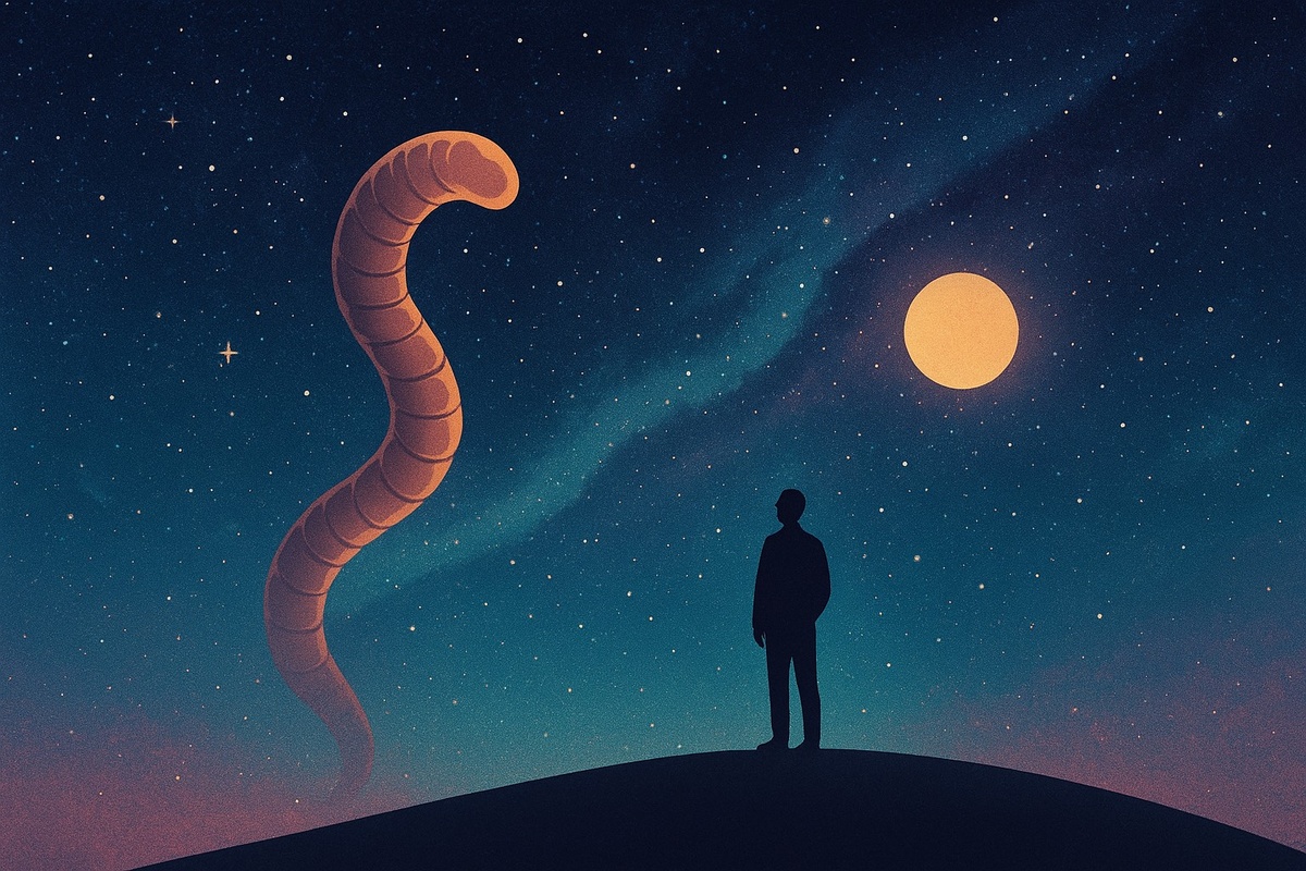 Мы видим мир так, как позволяют нам глаза, уши и мозг. Но что, если вокруг существует реальность, которую мы просто не замечаем? Эта статья о наших ограничениях восприятия и о том, как мы, как червяк перед человеком, можем не осознавать целые уровни бытия Представьте: по влажной земле медленно ползёт червяк. Он ощущает температуру, колебания, вкус почвы. Его вселенная - это тонкий слой грязи под ним и немного воздуха над ним. И вот рядом стоит человек. Огромная фигура, шум дыхания, тень, меняющая температуру почвы. Но червяк этого не замечает. В его реальности человека просто нет. Не потому, что человек скрывается - а потому, что червяк не способен создать модель этого явления в своём сознании. И вот вопрос: а если и мы - такие же червяки для кого-то? Мир червяка: реальность, ограниченная органами чувств Червяк не тупой. Он идеально приспособлен к своему миру. Просто его органы восприятия заточены под одно: почва, вибрации, химия. У него нет глаз - значит, нет образов. Нет слуха - зна