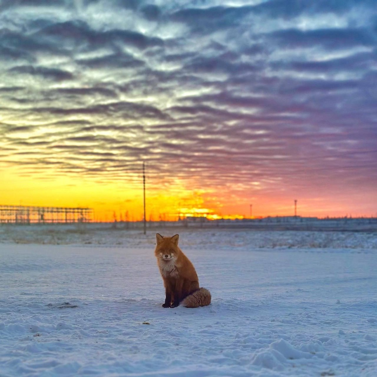 В Надыме лиса пыталась слиться с зарёй