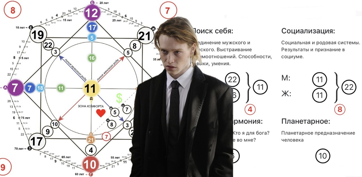 Калеб Лэндри Джонс и что нам может сказать его Матрица Судьбы (+ щепотка астрологии)? Калеб с детства был погружен в творчество. И на него ярче всего указывают 12 и 17 арканы по талантам, дуэт из 6 и 17 арканов на 6 чакре как показатель творческого гибкого мышления + наличие 18 энергии в личном квадрате и 6 в общем предназначении. Также меня зацепил факт о родителях, которые принимали его яркую индивидуальность, однако при этом были глубоко религиозными люди. На 2 чакре Свадхистане, которая отвечает за сексуальную энергию и ее проявление в мир, стоит дуэт 5 & 20 энергий, а на 5 чакре Вишудхе, которая в целом отвечает за наше проявление & то, как мы говорим, стоит сразу два 5 аркана - здесь о том, что изначально ограничения были, в данном случае они классически были вызваны религией & семьей, однако все же принятие родителей смягчило данную картину и отразилось довольно ярко - начало карьеры Калеба пришлось на 18 лет. (Актер кстати сам в интервью делился тем, что на площадке некоторые