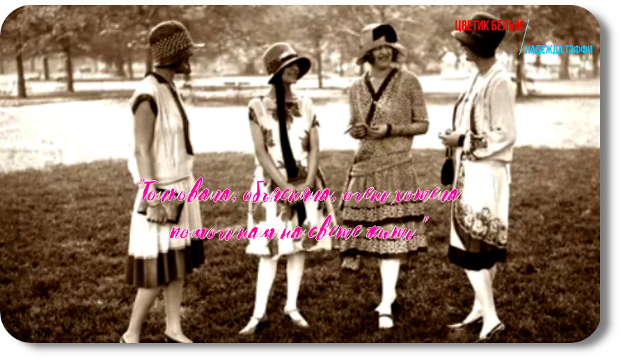 Аудио Трогательное и живое повествование, наполненное искренней эмоциональностью и тонкой иронией. В этом произведении Тэффи мастерски создает образ маленькой девочки, чей чистый взгляд и искренние слова напоминают нам о беззаботности и непорочности детства. Мне особенно запомнилась сцена встречи с дочерью Z - одиннадцатилетней девочкой с белокурыми косичками. Ее слово: «Вот не думала я, что вы приедете!» - буквально наполняет сердце теплом и нежностью. Взгляд девочки обращается к нам с добротой и заботой, и через эти слова проявляется вся искренность ее характера. Она словно говорит: «Я хочу помочь вам, я хочу сделать ваш мир лучше», - и это трогает до глубины души. Особенно запомнилась сцена, когда девочка объясняет, как использовать билетики для получения полотенец. Ее объяснение словно маленькая мудрость: «Когда берёте вино, спрашивайте такой билетик. Накопите сто билетиков -получите полдюжины полотенец». Это детское понимание мира, чистое и наивное, вызывает улыбку и одновременно