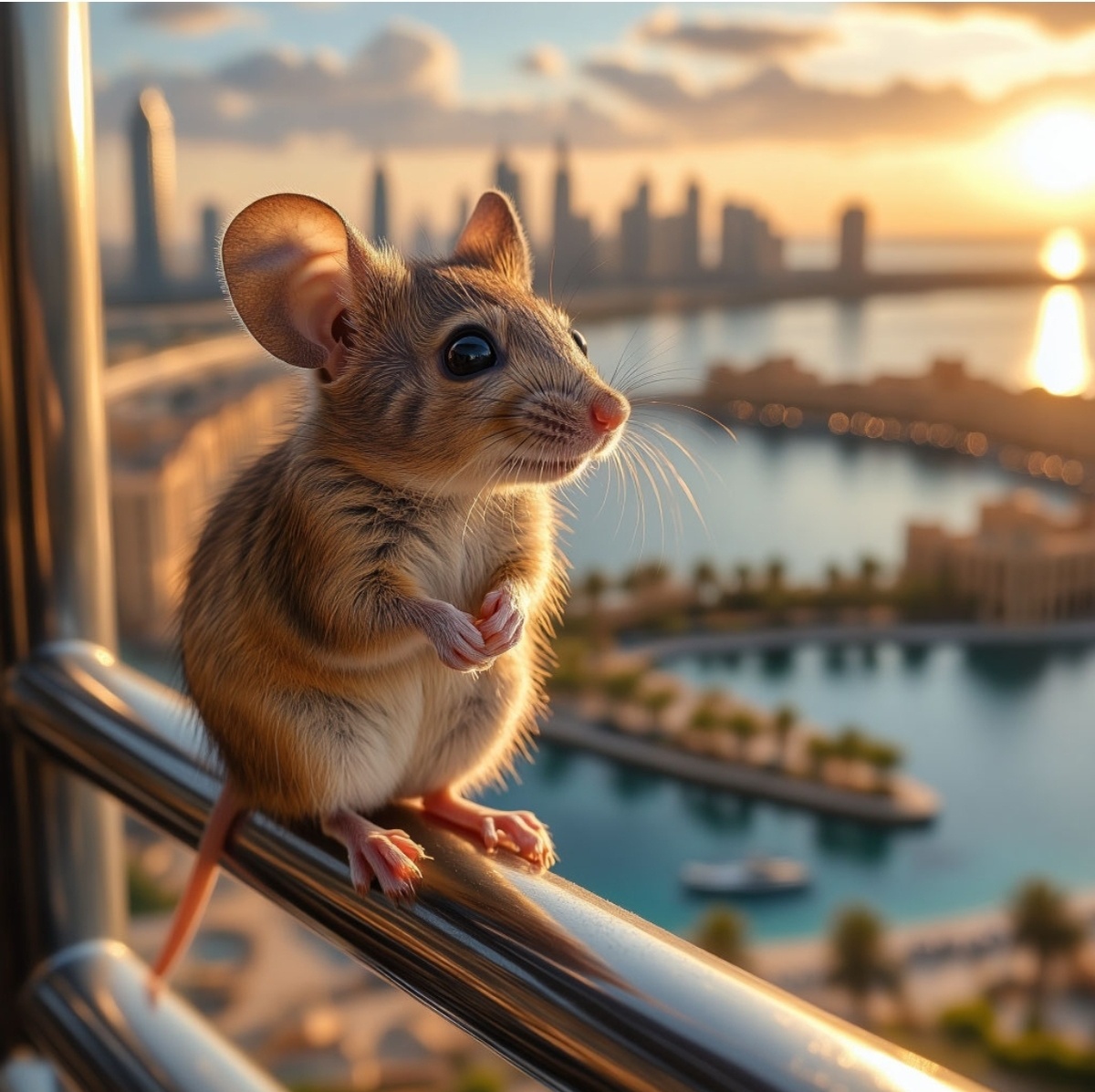 Глава 4. Пальма Джумейра. Первым делом Мышка Пипишка пошла на Мышиную Пальму Джумейру. Это такой искусственный остров (в реальной жизни просто Пальма Джумейра.). Остров был похож на крону дерева с ветками, на пальму, заключенную в круге. Отсюда и название Пальма Джумейра. Прошла на остров Мышка по 300-метровому мосту. Погода была чудесная, солнце светило ярко, лёгкий ветерок обдувал Мышку, не позволяя ей устать от жары. Тем более, что Пипишка одела широкополую шляпу и солнцезащитные очки. Этот наряд ещё и скрывал её от любопытных глаз окружающих. Так что никто не узнал в ней королеву. Когда Пипишка зашла на остров, то увидела множество роскошных отелей, ресторанов, торговых центров, были также парки. По одной из дорожек мышка прогуливалась. Пипишка долго гуляла по Пальме. И так вышла она к смотровой площадке "The Palm Tower", которая была 240 метров высотой. — Ух ты! – проговорила Пипишка. – Какая высокая! Наверное, оттуда весь остров как на ладони. Обязате