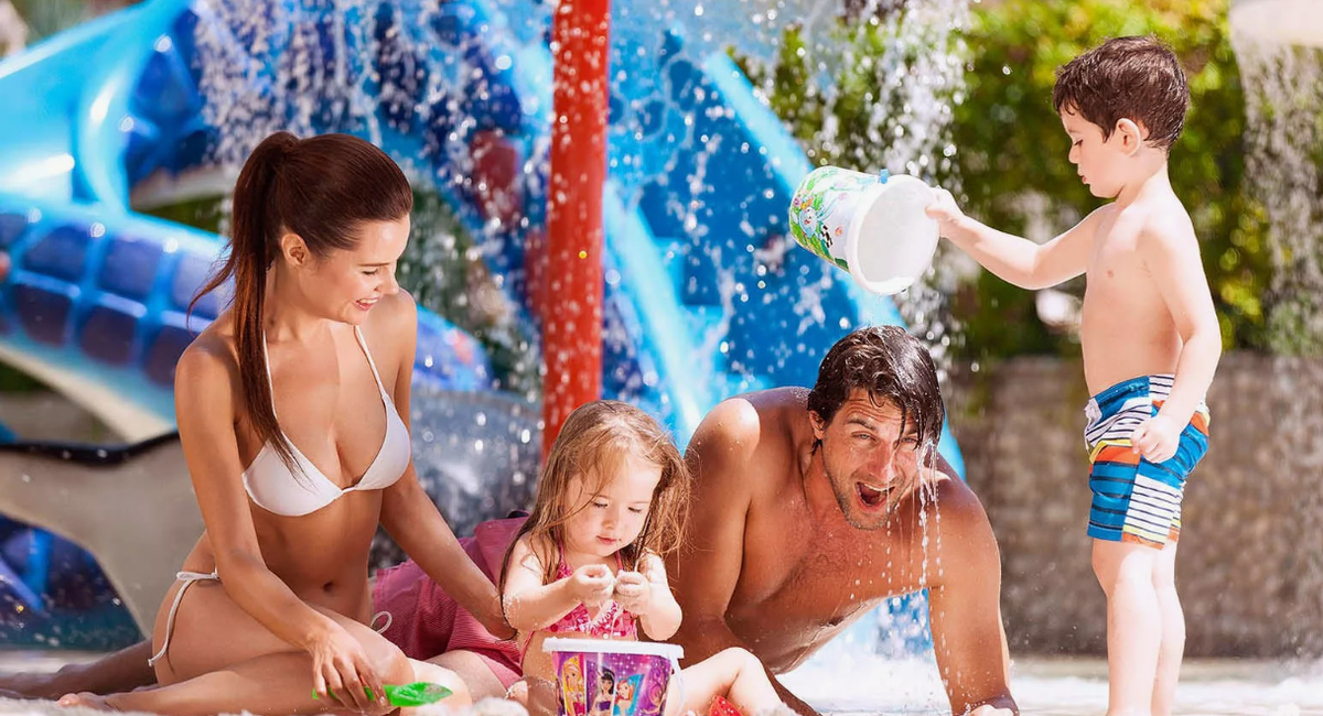 🎢 Огромный аквапарк с десятками горок — от детских до экстремальных для подростков.