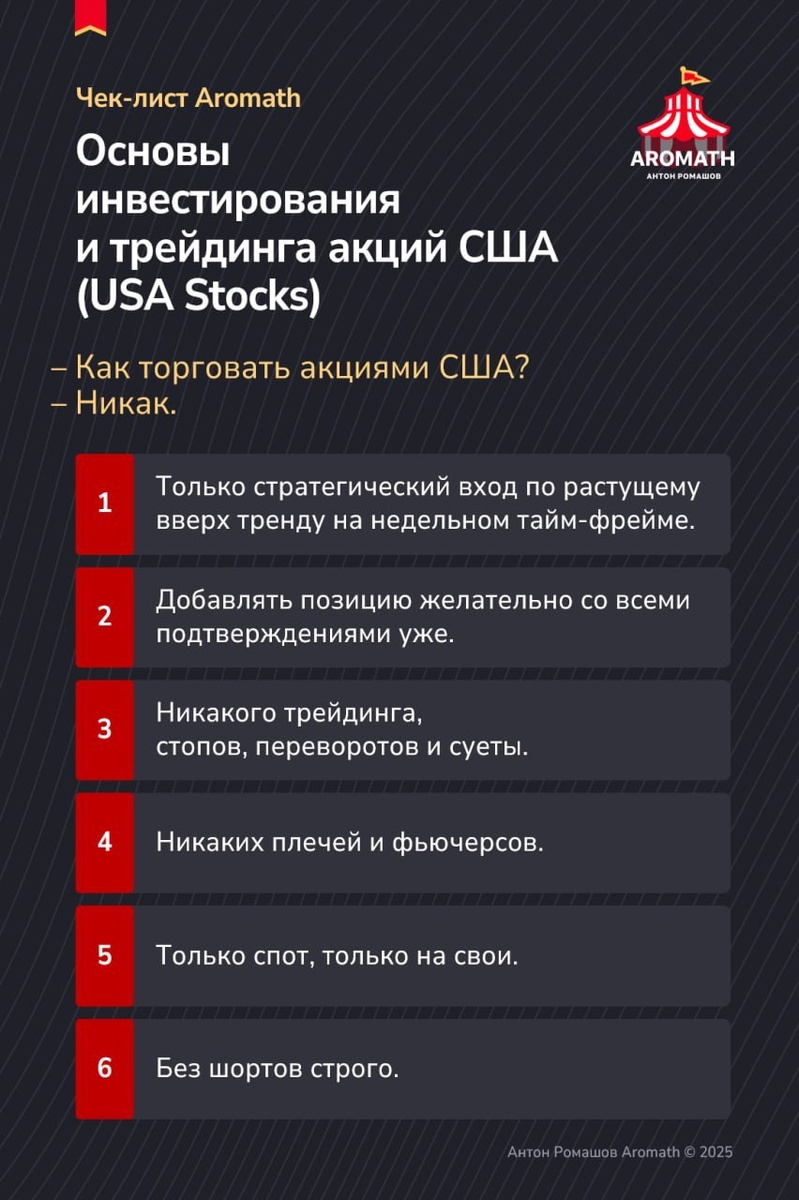 Основы инвестирования и трейдинга акций США (USA Stocks) от Aromath. Как торговать акциями США? Ответ - никак. 📍Акции США (USA Stocks) добавлены в бот-таблицу светофор Клуба - @Aromath_table_bot: диапазон входа, цели, стоп, отмена, апсайд. Как инвестировать в акции США ? ↗️ Проверенные, реально работающие способы инвестировать в акции США: 1. Брокер Финам (открыть счёт - Ссылка партнерская Aromath) 2. Прямо в своем Telegram = Кошелек @wallet 3. TradFi Bybit (открыть счёт - Партнерская ссылка Aromath ) 4. Брокер в Казахстане - Freedom Broker, например.