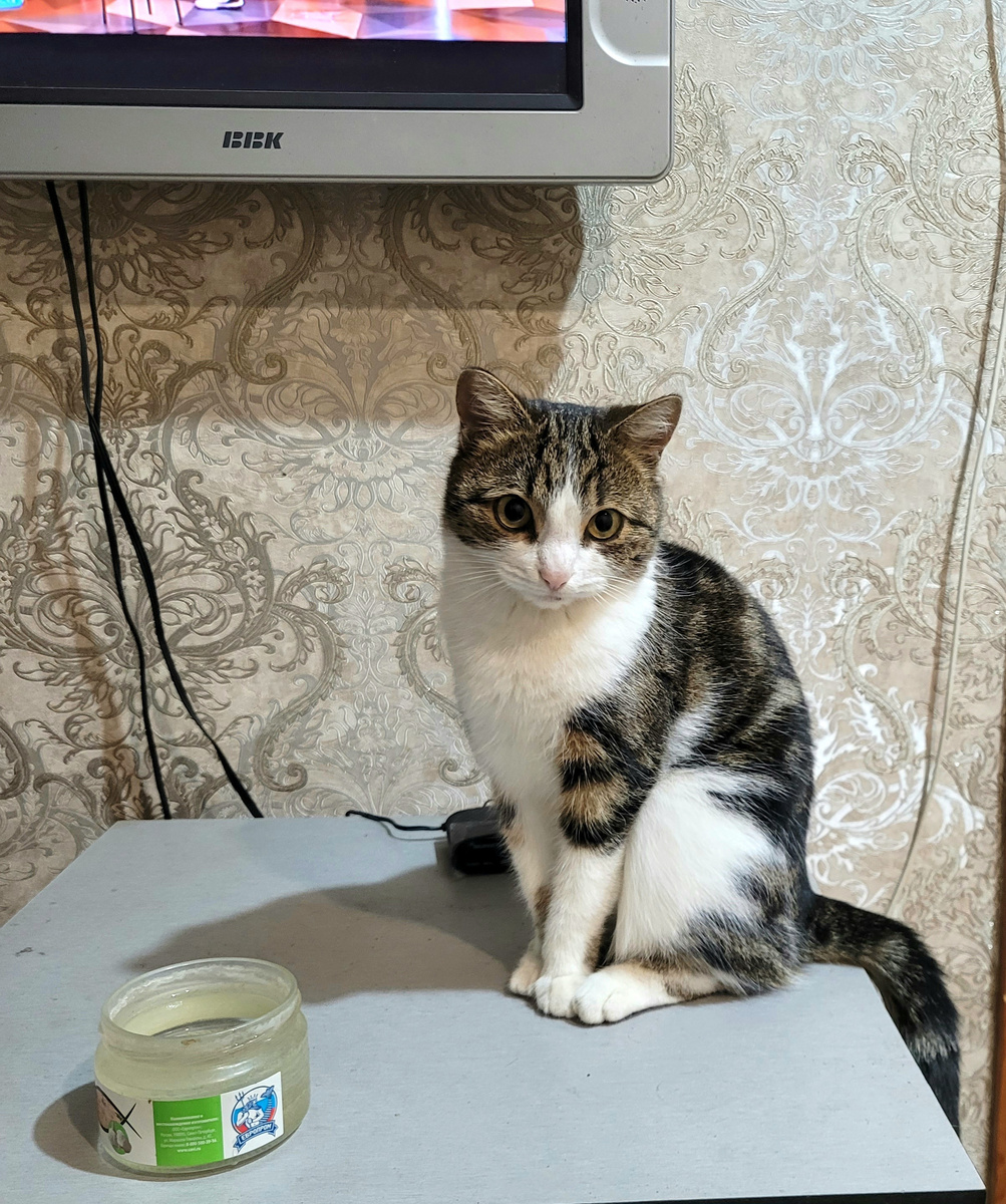 Здравствуйте, дорогие друзья и гости канала.Встала сегодня в семь часов, написала статью и направилась на кухню готовить завтрак. Всегда включаю телевизор. Пока готовилась геркулесовая каша, показывали несколько упражнений для укрепления мышц. И стала вместе с тренером делать эти упражнения. Там в основном были махи руками и ногами. Я по мере возможности старалась выполнять. Пока не посмотрела на Машку. Она так удивленно смотрела на меня. Кстати, эта тумбочка ее любимое место. Раньше в эту баночку я ставила черенки для прорастания корней. А Машка запрыгивала и пила из них воду. Хотя на полу около кормушки всегда стояла налитая вода. Сейчас я черенки не ставлю, но она продолжает пить только из этой банки. За два дня выпивает всю воду. Поэтому я каждый день или добавляю воду, чтоб было удобнее пить, или обновляю. С Машкой скучно не бывает. Сейчас наступили холода. Машка выходит гулять и пропадает. А мне жалко ее, боюсь, что замерзнет, и постоянно открываю окно и зову ее. Один раз бежит