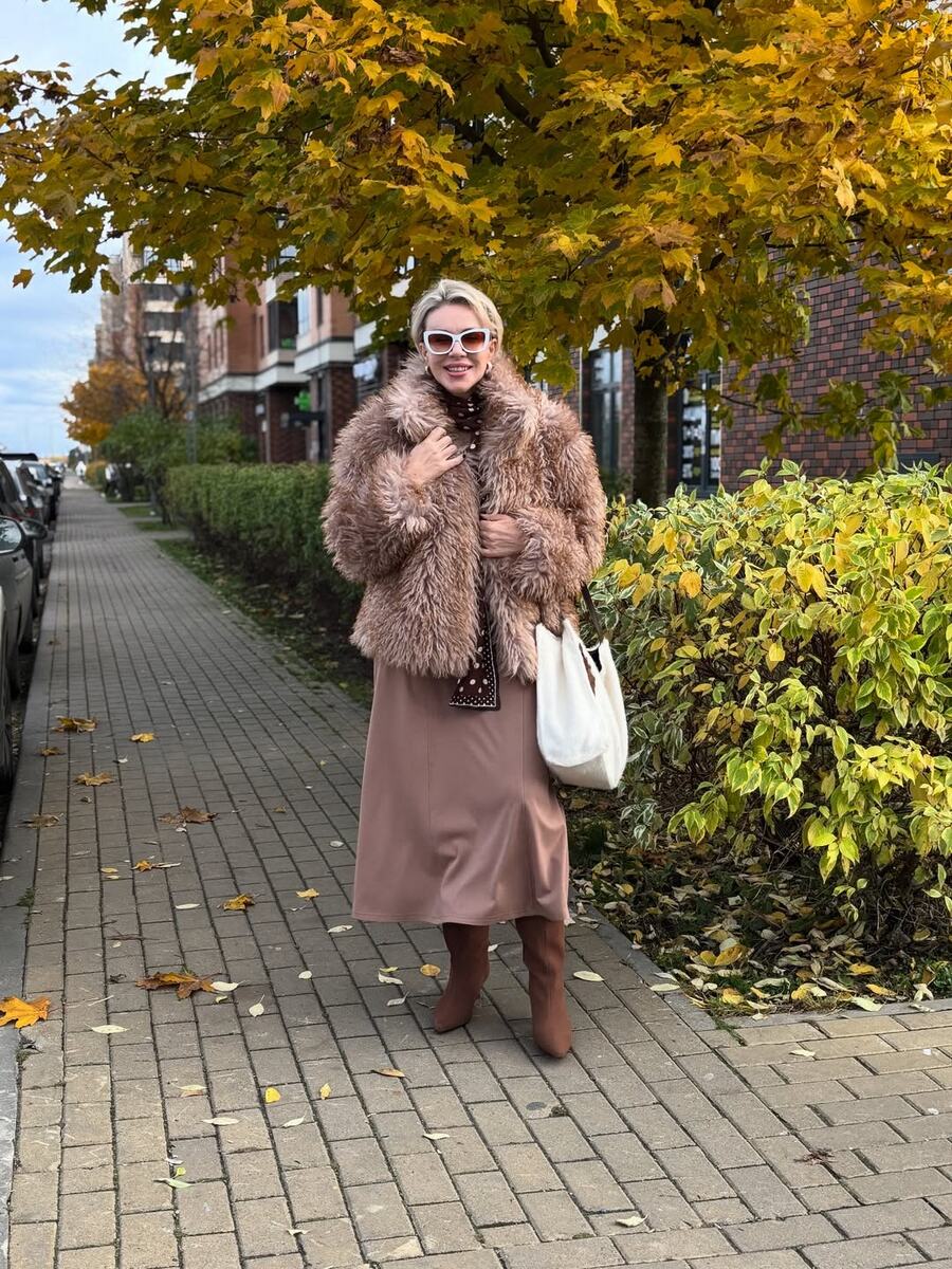 Здравствуйте, дорогие читатели! Какую бы статью я ни выложила, неизменны ваши просьбы дать ссылки на всю одежду и аксессуары, которые есть на мне. По вполне понятным причинам это проблематично, но на ваши вопросы я всегда стараюсь ответить. Поэтому я ввела на канал рубрику, в которой буду в подробностях обозревать свои любимые образы. Не забывайте ставить лайк за мои старания! Многие задавали мне вопросы про этот классный осенний образ, и сегодня я расскажу и покажу, где купить все его составляющие. Трендовая экошуба - моя новинка от от бренда Revalu. В последнее время нравится их верхняя одежда. Платье кофейного цвета от одного из моих любимых брендов Dress me. Идеально для осени. Платок в актуальный горошек от бренда ZARA. Сапоги покупала на Wildberries, это натуральная замша. Артикул на них как всегда оставляла на втором канале: Про сумку вы наверняка в курсе, она фигурирует во множестве моих осенних образов. Это бренд Zarina, трендовый коровий принт. Очки из моей любимой оптики Эта