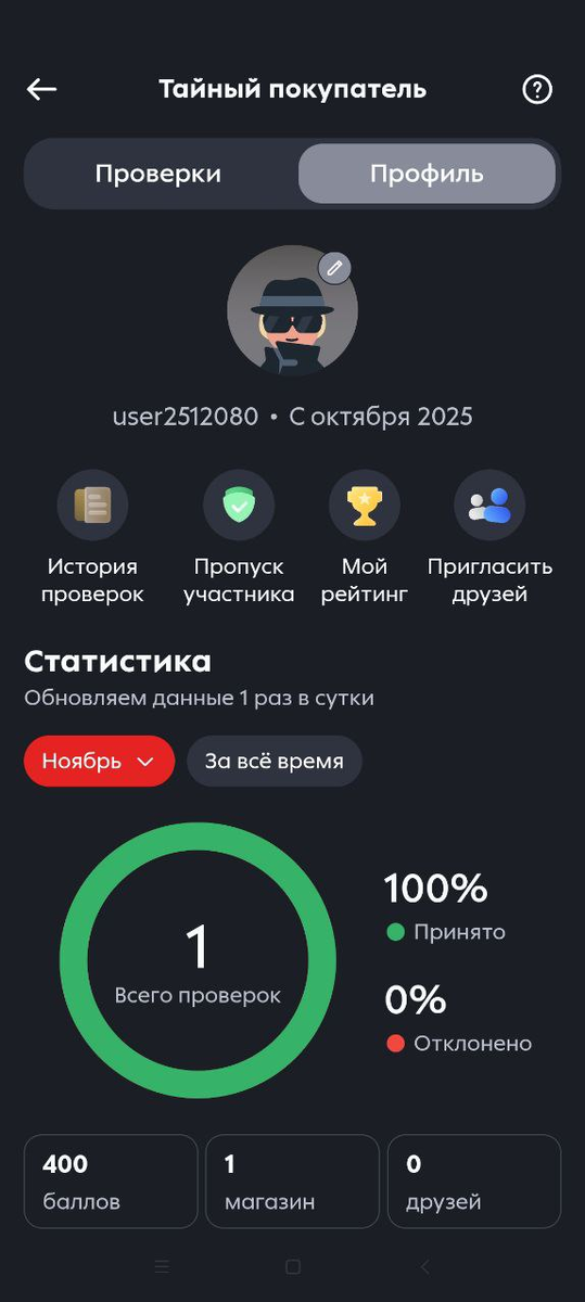 Недавно заметила в приложении Пятерочка функцию «Тайный покупатель». Зашла посмотреть, что да как. Читала на Дзене у одной женщины, что она регулярно проверяет Пятерочку и другие магазины. Есть какое-то специальное приложение для этого. А тут эта функция прямо в самой Пятерочке. Только оплата тут бонусами, на которые потом можно купить продукты. А в том приложении вроде как деньгами. В Пятерку хожу постоянно. Потому что рядом и цены сравнительно других местных магазинов приемлемые. В магните тоже нормальные, то он дальше. В местных сетях что-то стоит также, а что-то дороже. Так вот, там есть несколько разделов, по которым можно оценивать магазин. Например, вежливость сотрудников, их отзывчивость, свежесть и качество товаров, точность цен по категориям, ценники и касса, чистота и порядок, готовая еды и т.д. Высвечиваются магазины, которые находятся рядом и которые можно проверить. Я пока пробовала вежливость сотрудника. За это дается 400 баллов, можно подумать, что 400 рублей, но губу