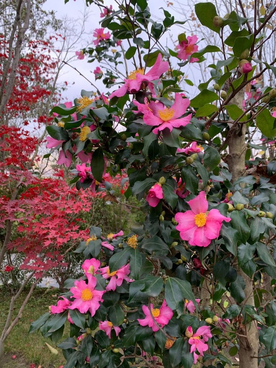 Около Народного дома Коминка расцвела камелия — чудо среди ноября. Полюбуйтесь, друзья! 😍🌺 🥧🍂🍁🍁🍁🍂🍂 📸alena_utemisova 4️⃣5️⃣5️⃣5️⃣ 💜 Японский сад в MAX 🛩Японский сад | Подписаться