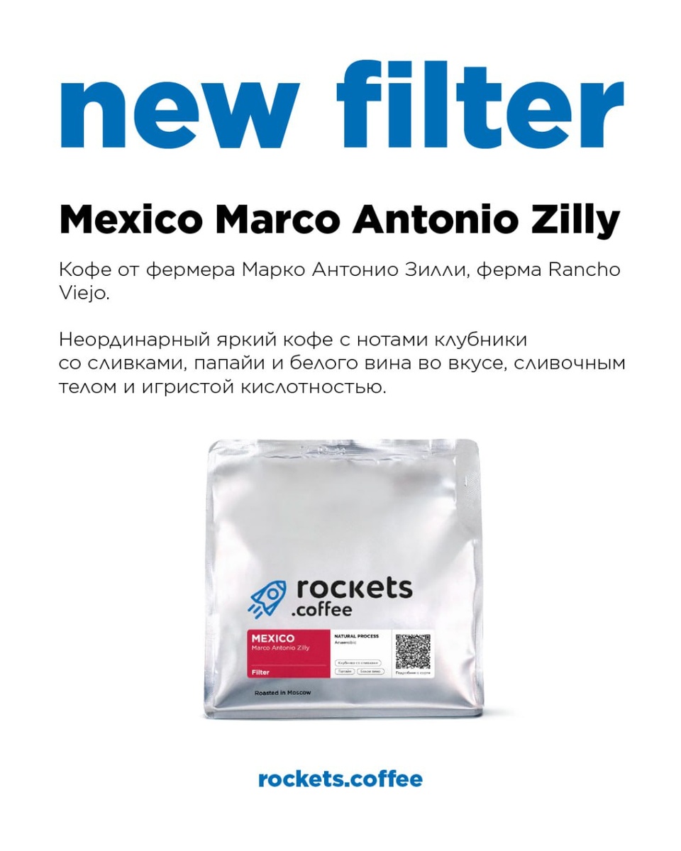 Новинка недели 🤩 🚀 MEXICO MARCO ANTONIO ZILLY Неординарный яркий кофе с нотами клубники со сливками, папайи и белого вина во вкусе, сливочным телом и игристой кислотностью