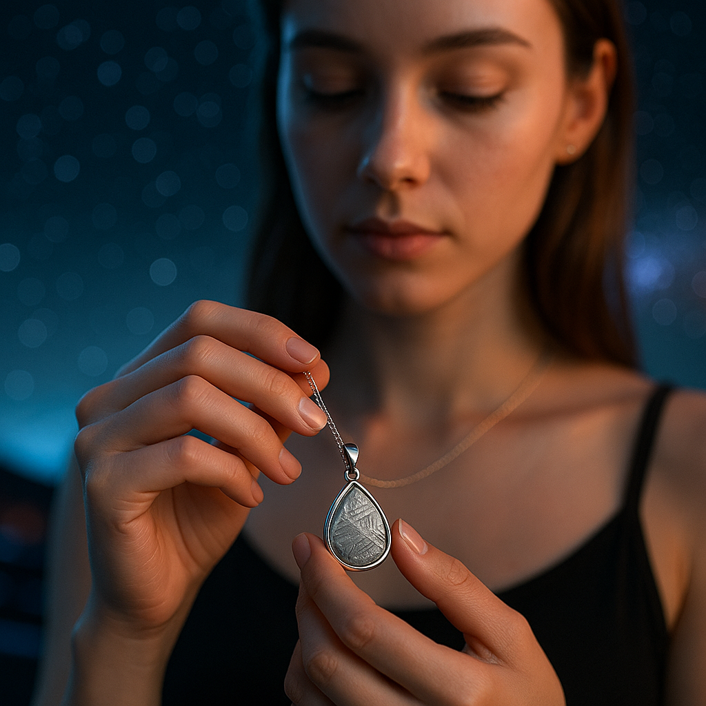 Когда берёте в руки кулон или кольцо, в нем сходятся сразу несколько историй: о происхождении вещества, о кристаллизации, о падении на Землю и о человеческих руках, которые бережно превратили фрагмент в украшение. Эта «слоистость» хорошо ощущается вживую: предмет маленький, а чувство — большое.