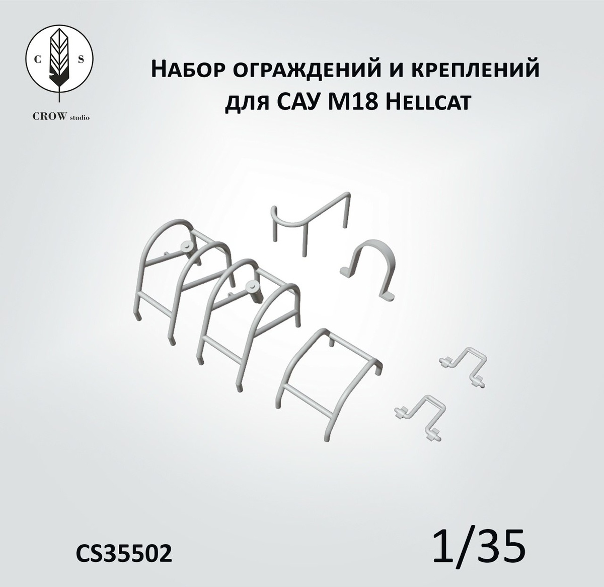 Санкт-петербургская CROW Studio выпустила на 3D-принтере набор ограждений и креплений для модели американской САУ M18 Hellcat в масштабе 1/35. В наборе: Ограждение фар; Ограждение звукового сигнала; Ограждение антенны; Крепления на башне; Крепёж для сошек пулемета.